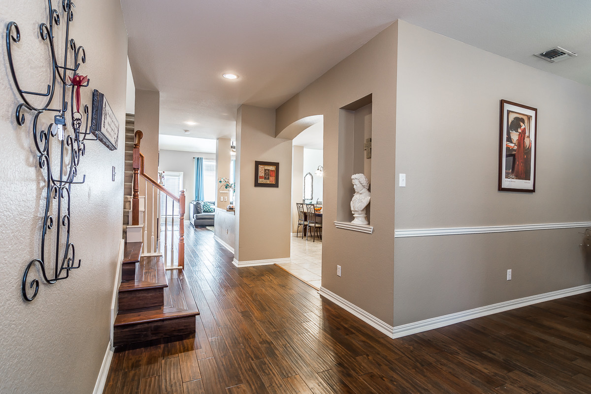 $3000 decorating bonus at closing for buyer! Beautiful family home on corner lot in the heart of West McKinney in Stone Brooke Crossing. Hardwoods flow through downstairs. Enjoy large kitchen with functional island, granite counters and picture window at sink with natural light abounding! SO much cabinet and counter space! Stainless appliances and undermount sink complement this updated kitchen. Huge family room makes a statement with vaulted ceilings and built in shelving! Large Master bedroom with sitting area downstairs plus 3 bedrooms upstairs. Large game room up. New roof 2017.