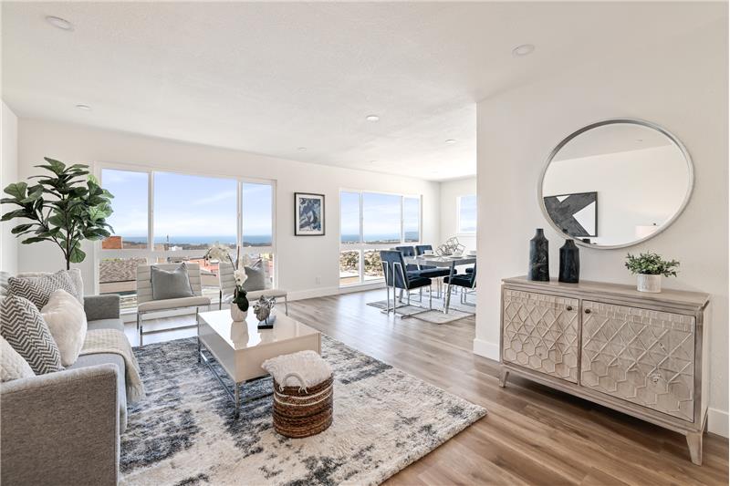 Welcome to 553 Orizaba Ave. This stunning home located in Merced Heights, has been updated to perfection, and has unobstructed ocean and city views. Features; flowing floor plan with 4 beds/3 baths and solar. Main level features 3 well proportioned bedrooms, 2 bathrooms, including primary bedroom with en-suite bath. Spacious kitchen with new stainless steel appliances and ample cabinets that blend seamlessly. The open dining area has lots of natural light, and the living room awaits with a cozy fireplace. The lower level features, 1 bedroom with en-suite bath, kitchenette, great-room/medi ...