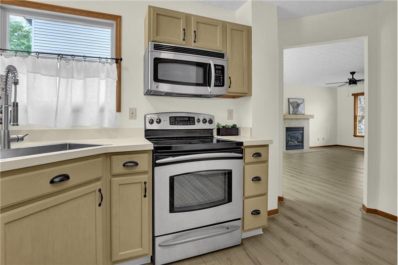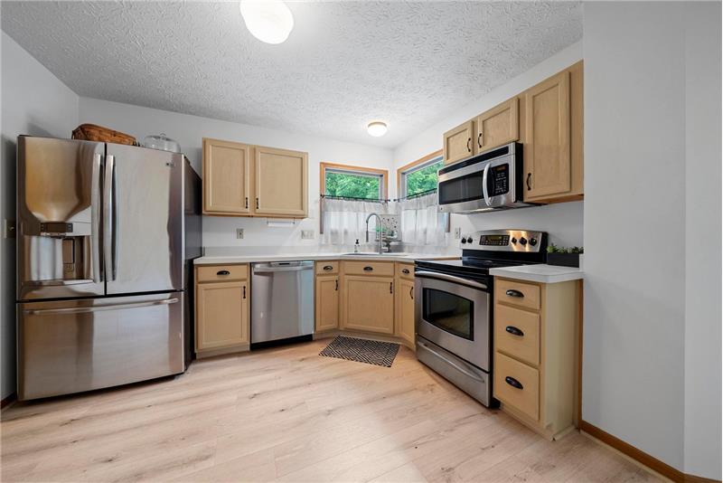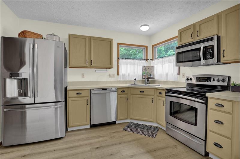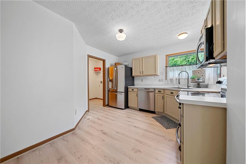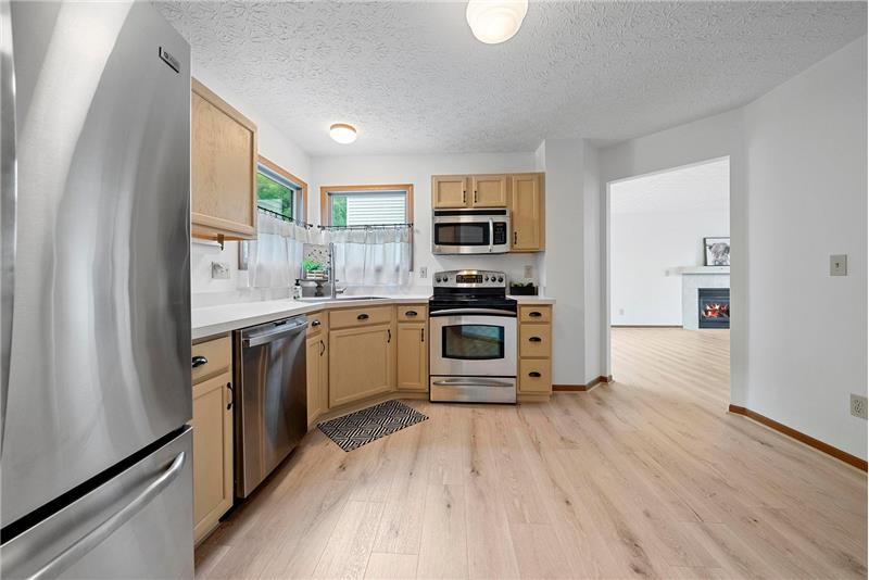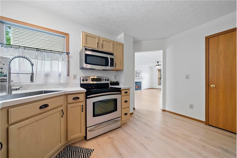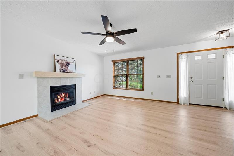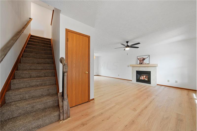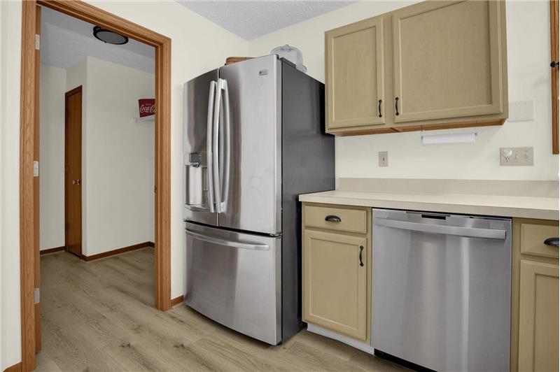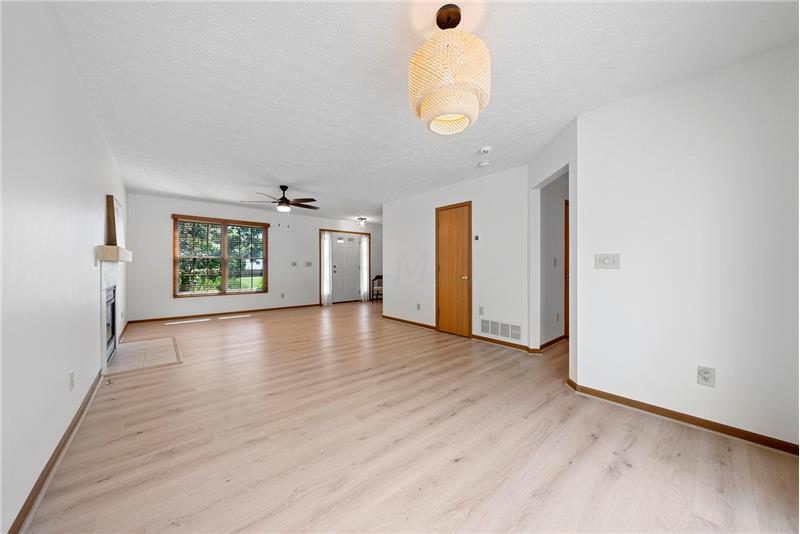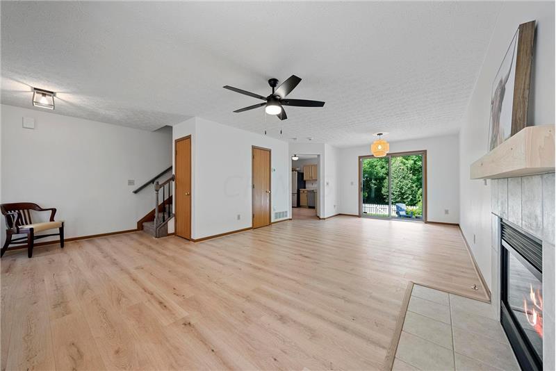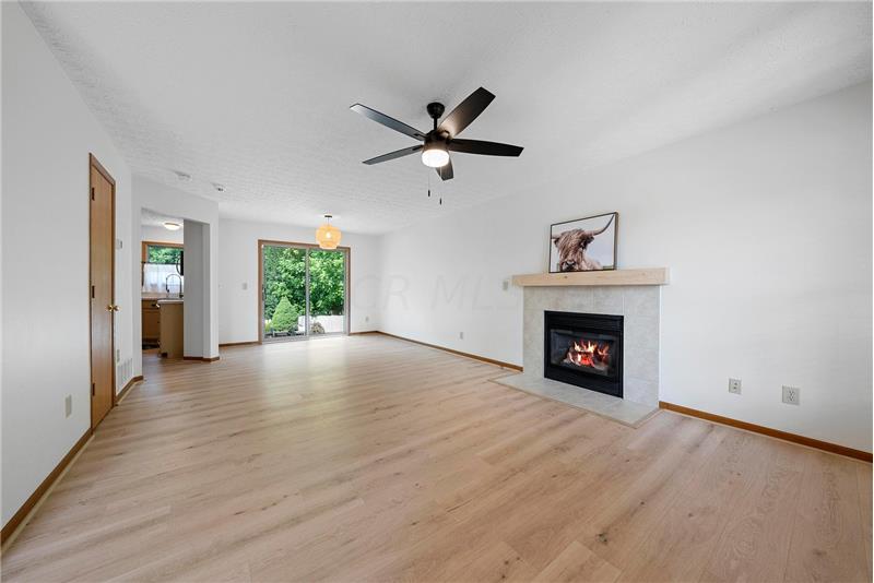 Welcome home to this fabulous #WestervilleSchools / #ColumbusTax beauty with #fullrefresh including brand new #laminate floors, new carpet, updated lighting, painting, and more. Refreshed kitchen with decorator cabinets & new SS Fridge & dishwasher 2020. #Openconcept floor plan with #soaringceilings and #gaslogfireplace . Sliding doors lead to entertainment size stamped concrete patio with freestanding outdoor outlets in the freshly painted (2023) fenced yard overlooking mature, park like trees with bike and hiking path. No homes behind! All bedrooms nice sized with closet organizers.