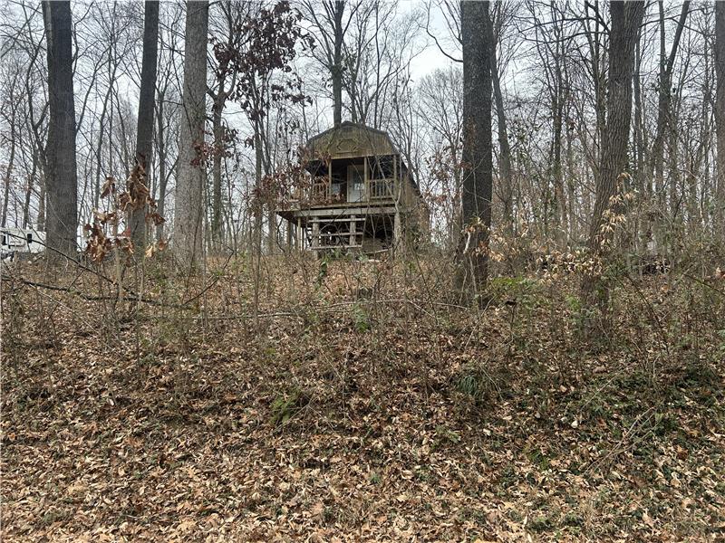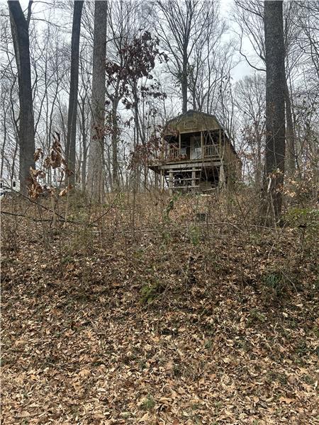 0.167 acre partially wooded lot with unfinished cabin. Previous owner partially insulated, installed wiring and plugs and started covering walls. Present owner had porch and steps built and had lot mostly cleared. Has loft. No water meter, septic, electric or driveway. Finish the way you'd like!