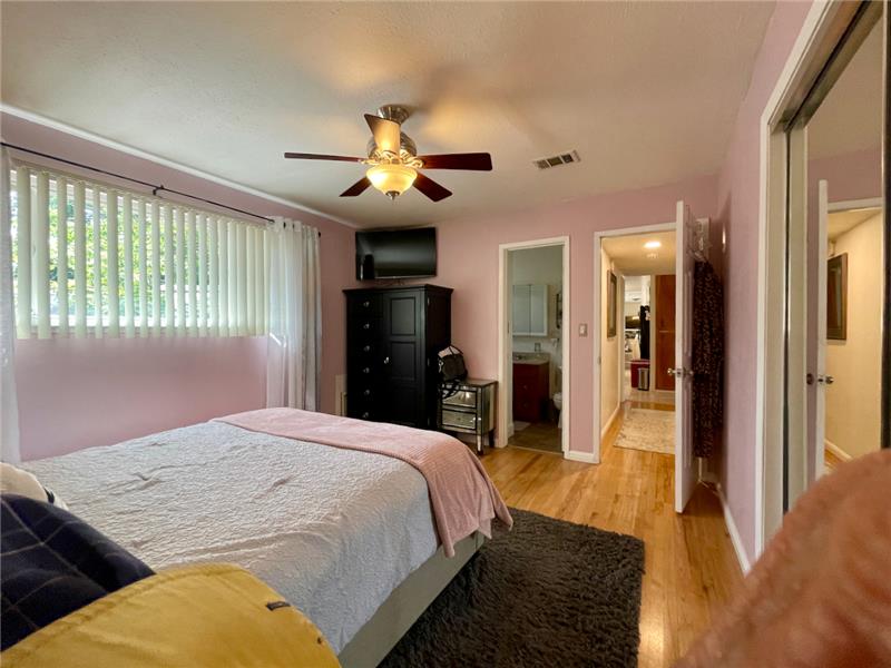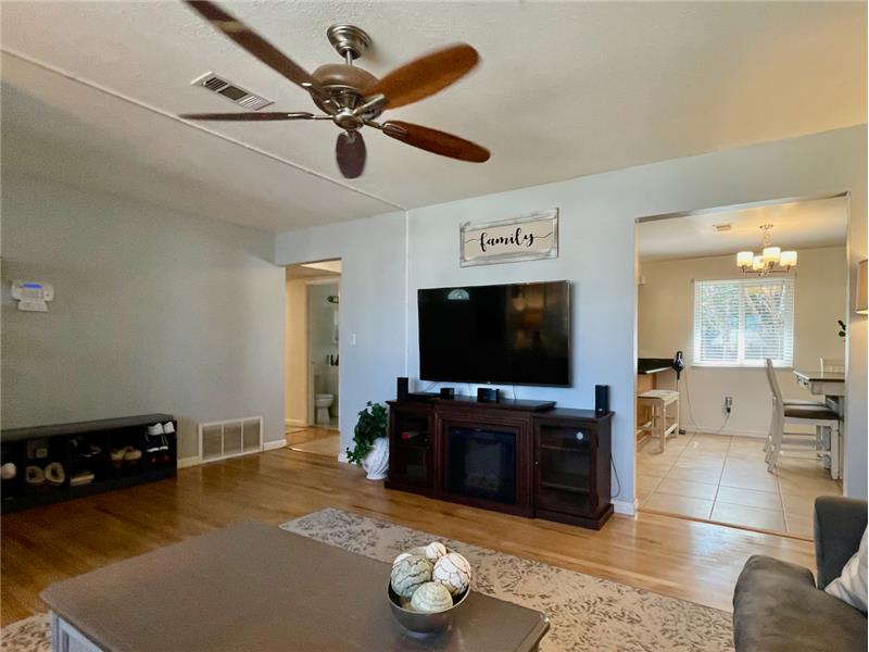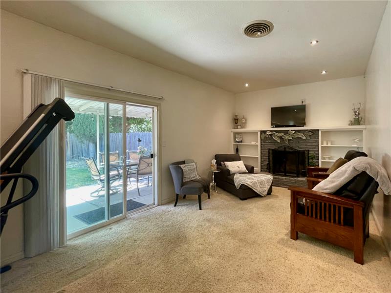 SOLD!- Take a look at this three bedroom two bath, two car garage single-story home that's been upgraded and updated. Plus, there is a deep backyard with a covered patio. We've got classic finished-in-place white oak solid hardwood floors throughout the house and ceramic tile in the kitchen and dining area. The kitchen has replaced oak cabinetry with granite countertops, a new stove, a new dishwasher, and a new garbage disposal. In the living room, you'll enjoy plantation shutters, and in the family room there are built-in bookshelves around the brick fireplace.