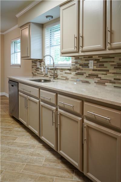 No detail left unturned on this 3 bedroom 2 bath beautifully updated house. All new real wood cabinets in the kitchen and bathrooms with granite countertops, new stainless steel appliances, all tile shower and tub enclosures, and look at those tile floors! If you like the outdoors you'll love the tile patio in the backyard or the large storage building to keep all your outdoor toys. Convenient location just down the street from the park and minutes to the mall and Moore Plaza.