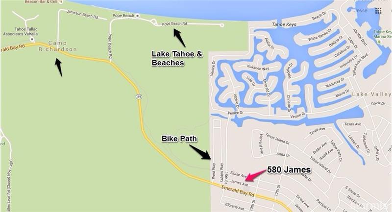 Location, Location, Location! Bring out the beach cruiser and get ready to cruise to the many beaches or Camp Richardson. Situated on the bike path, near million dollar homes, minutes to Lake Tahoe beaches, shopping, and just a few minutes from night life this home is a perfect Tahoe retreat. Pride of Ownership is displayed throughout this wonderful home. Recently updated features include, new kitchen, wood flooring, paint, carpet, windows, bear box, and a brand new deck. The upstairs full attic has plans drawn for loft that could possibly be turned into additional bedroom or living area.