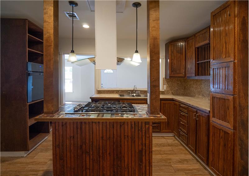 If you are looking for a large house with plenty of storage, you've found the one. The house has 3 bedrooms downstairs, with 2 additional rooms upstairs that could be bedrooms, storage areas, play areas, etc. The primary bedroom is spacious and includes a walk in closet and bathroom with a shower and separate garden tub. The kitchen has been updated and has a ample counter space and an island in the center with a gas cooktop. The rear over sized garage is perfect for the handyman with 2 additional rooms inside so parking 2 vehicles is not a problem.