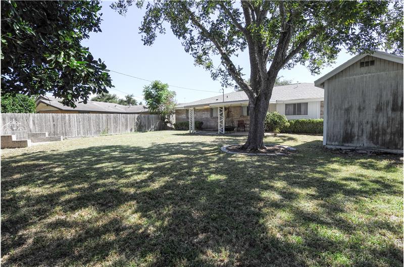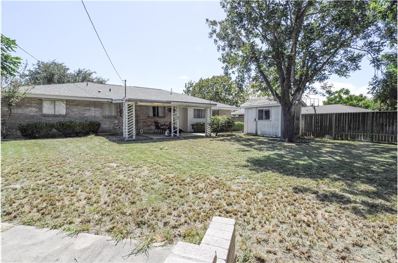 Nicely updated house nestled in the quiet Academy Heights neighborhood. This 3 bedroom house has cathedral ceilings with wood beams, 2 living areas, laminate flooring throughout most of the house, updated bathrooms with tile tub and shower surrounds, and a newer roof. If you like enjoying the outdoors this is the perfect backyard for you, it has a covered patio, storage building to keep everything off the patio and yard, and concrete walkway to the front, and a huge pecan tree providing ample shade throughout the fenced yard. The location provides easy access to Interstate 37.