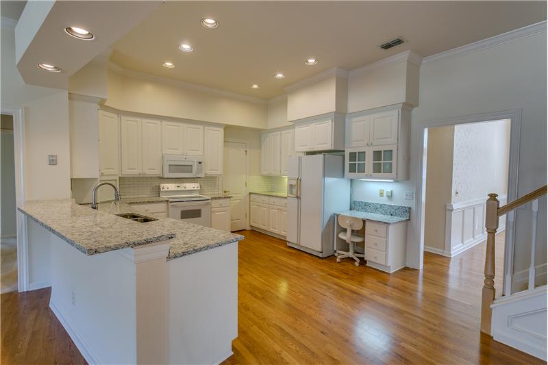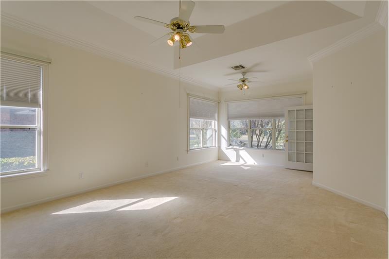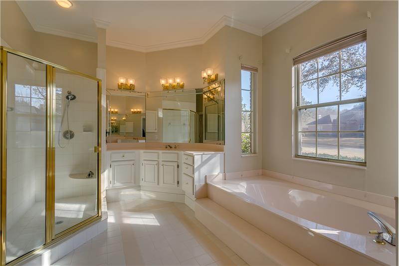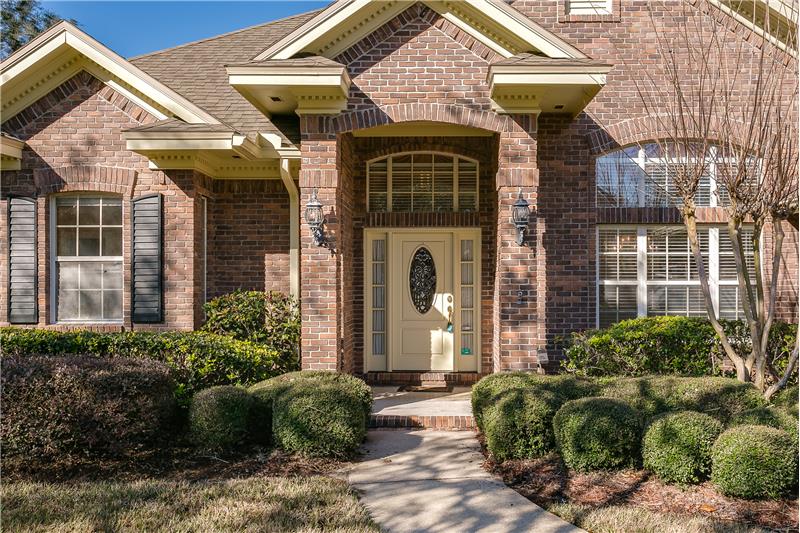 When only a custom brick home will do, this gracious home is a must see. Enjoy golf course views, pond to preserve, from almost every window in the house. All the rooms you need are here, brimming with cheerful light - formal living and dining rooms, family room, sun/game room, and a bonus room with charming window seat and scenic balcony. If you need it, the bonus room counts as a 5th bedroom. Timeless upgrades include 12 ft ceilings, hardwood floors, extensive crown molding, tray ceilings, granite counters, subway tile backsplash, new fixtures, family room fan, and freshly painted interior.