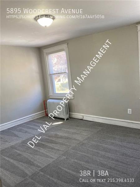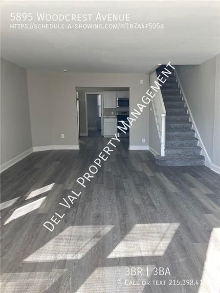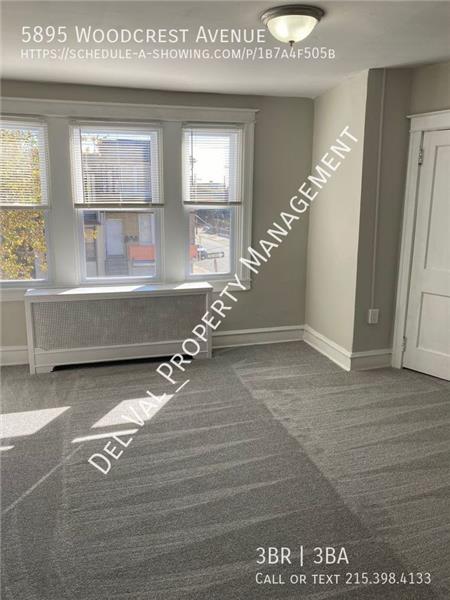 Huge Corner House in Wynnefield – 3 Bedrooms, 2 ½ bath for Rent $1,875/month rent plus utilities 3 Bedrooms 2 1/2 Bathrooms 2,044 square feet First floor has new hardwood flooring throughout Large Eat-in-Kitchen with stainless steel appliances Gas Stove Kitchen leads into a rear bedroom on first floor Full Bathroom on first floor Second floor has new carpeting throughout 4 Bedrooms with plenty of closet space 1 Full Bathroom on second floor Dry and Clean basement with hookups for Washer/Dryer Philadelphia School District No Pets No Smoking /vaping permitted