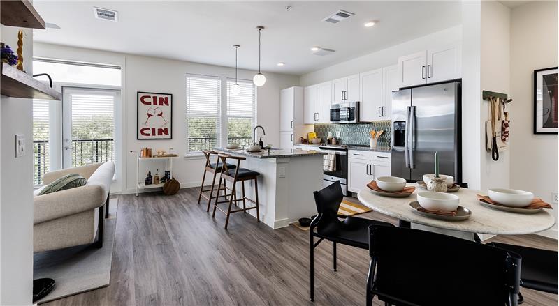 Experience the perfect blend of comfort and convenience in these beautifully designed apartments, offering a serene retreat with modern style. Spacious interiors feature contemporary finishes, including stainless steel appliances, custom cabinetry, and sleek countertops, creating a sophisticated living space. Expansive windows invite natural light, enhancing the open-concept floor plans. The community boasts a wide range of amenities, from a resort-style pool and fully equipped fitness center to lush outdoor spaces designed for relaxation and socializing. Residents also enjoy the convenie ...