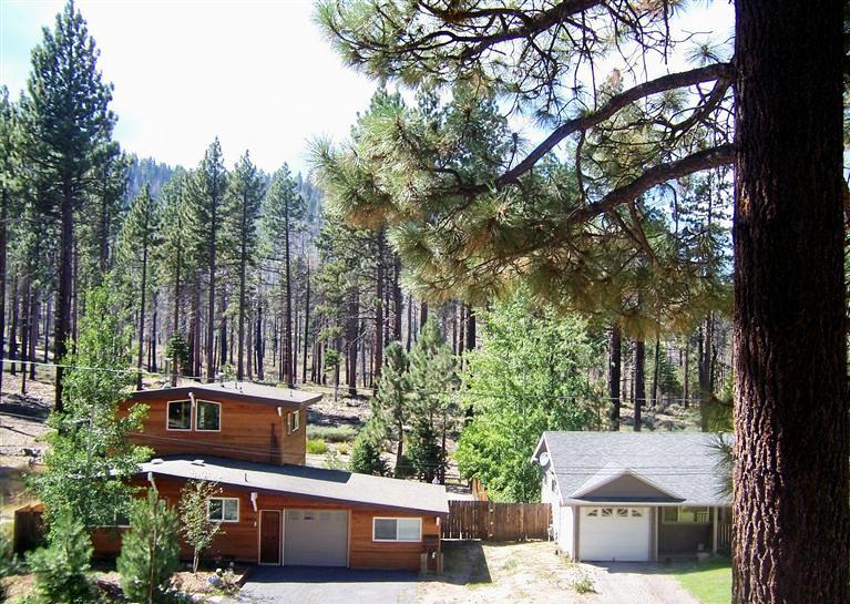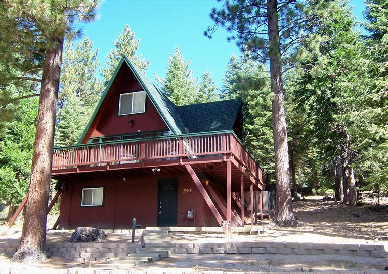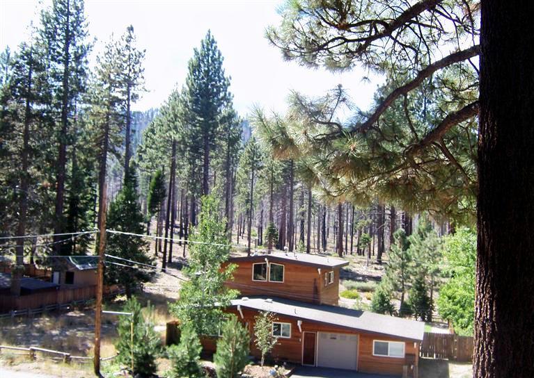 Lovely Tahoe Chalet nestled under the pines with meadow & Mountain VIEWS looking out the wall to wall windows on the second level living area and, from the wrap-a-round trek-deck. Gas Fireplace in the Living Room to warm you on those cool Lake Tahoe evenings. Knotty Pine walls & ceilings with wood beams. Upper level has vaulted ceilings. Three bedrooms, 1 on the lower level and 2 on the upper level. Large sunny kitchen with built-In appliances & adjacent dining area. Two upgraded bathrooms. Large entry with access to basement where laundry facilities, sink, workshop, & storage area are located