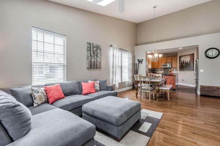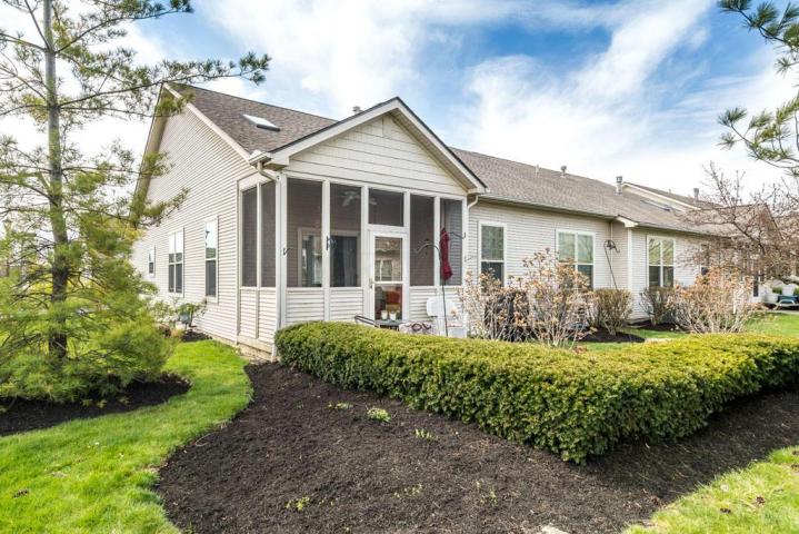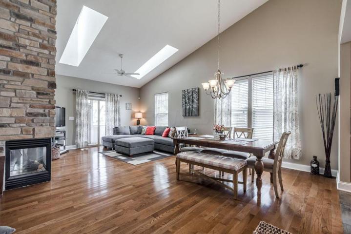 Easy living is yours in this #convenientlylocated #Hilliard condo offering 2 bedrooms PLUS den with #frenchdoors and 2 baths. First floor laundry. Exceptionally large kitchen with newer #centerisland , abundance of cabinets, remodeled 2012 with #longstretch of #granitecounters , upgraded SS appliances and #decoratorwoodtile floors. . Brand new #gleaming #hardwoodfloors , Floor to ceiling #stonemantelfireplace . Updated painting, new lighting and more. New Roof 2016. New AC 2017. Wide baseboards, upgraded doors, 2'' decorator blinds . Spacious #cathedralceiling master with #walkincloset .