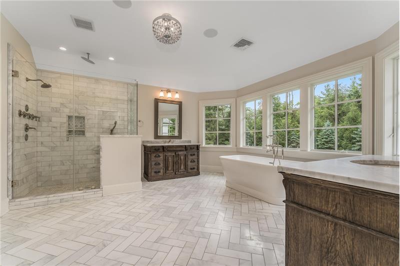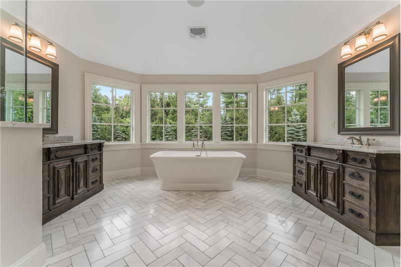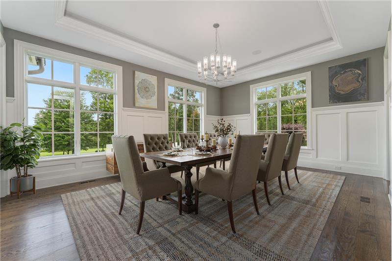 Distinguished center hall colonial, impressively situated on an 8-home cul-de-sac. Over 8000 sf of elegant living space, including a fully-finished basement with wet bar, media room, and full bathroom. Custom millwork, coffered ceilings, and wood floors throughout, with many additional upgraded finishes. Stunning kitchen with center island, bar seating, plus a generous breakfast area with bay window. 5 car garage! Bluestone patio is the perfect place to entertain and enjoy the beautiful, private back yard. This home will absolutely exceed your expectations!