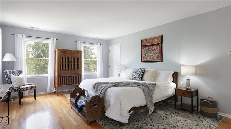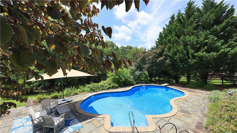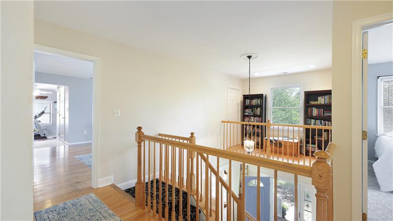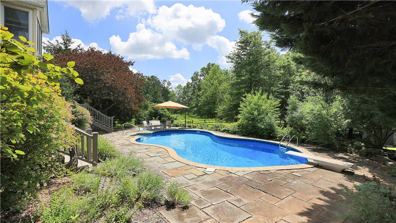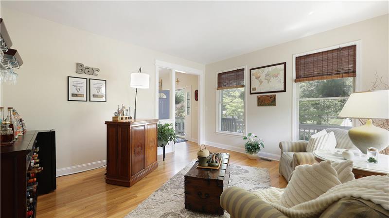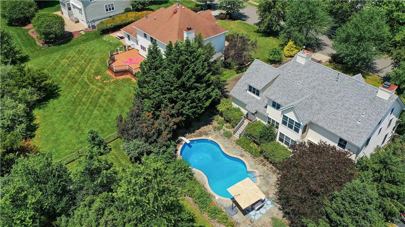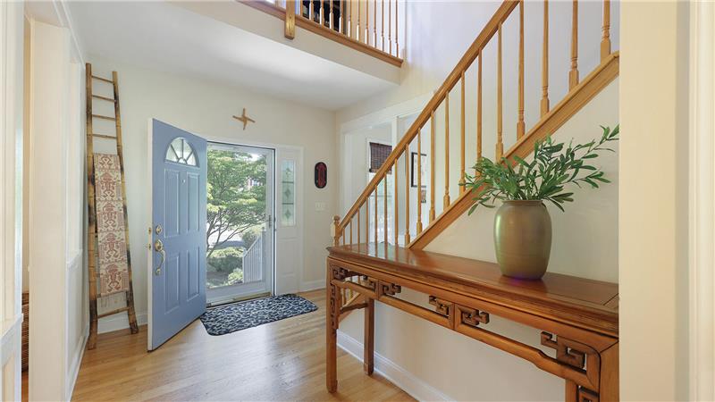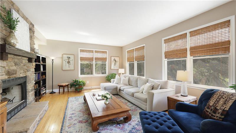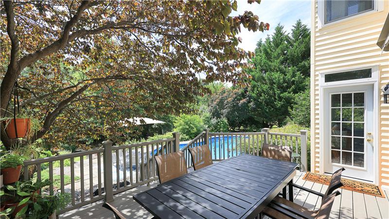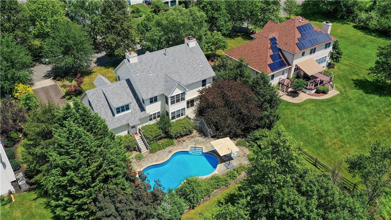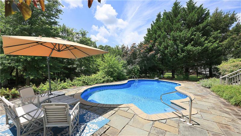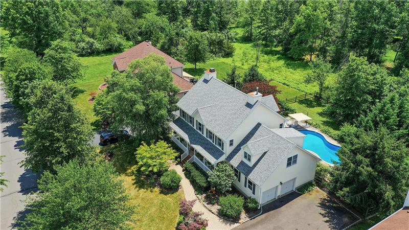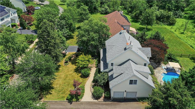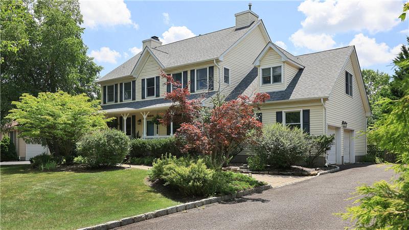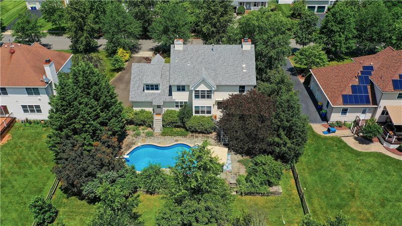 Move right into this beautifully appointed 4-Bedroom, 2.5-Bathroom home, offering comfort and style both inside and out from the cozy covered front porch to the private backyard retreat with in-ground pool, Trex deck with motorized awning, and bluestone patio. The two-story foyer leads to a unique loft-style nook off the primary suite, ideal for reading or showcasing your book collection. Hardwood floors grace the living and family rooms, the latter featuring a stone-front wood-burning fireplace.