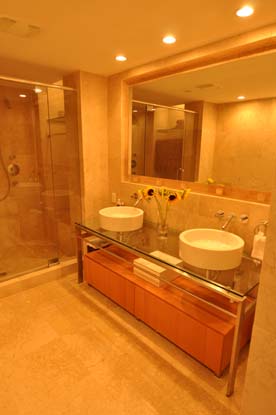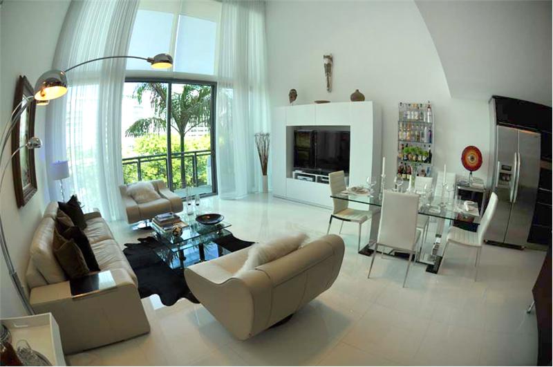 A luxury mid-beach retreat within a private atrium enclave known as 'Terra Beachside Villas'. This desirable 3rd floor (#312) villa boasts 20' ceilings with white glass floors, 2 bedrooms plus a den/loft overlooking the Indian Creek intracoastal waterway. Villa #312 upgraded features include electric blinds (blackout), 2 assigned parking spaces, 2 terraces, designer lighting, custom closets and an optional (sold seperate) contemporary furniture package. Italian Kitchen cabinets and appliances include the very best of Meile, Smeg, Kitchen Aide and a Whirlpool stackable Washer & Dryer within