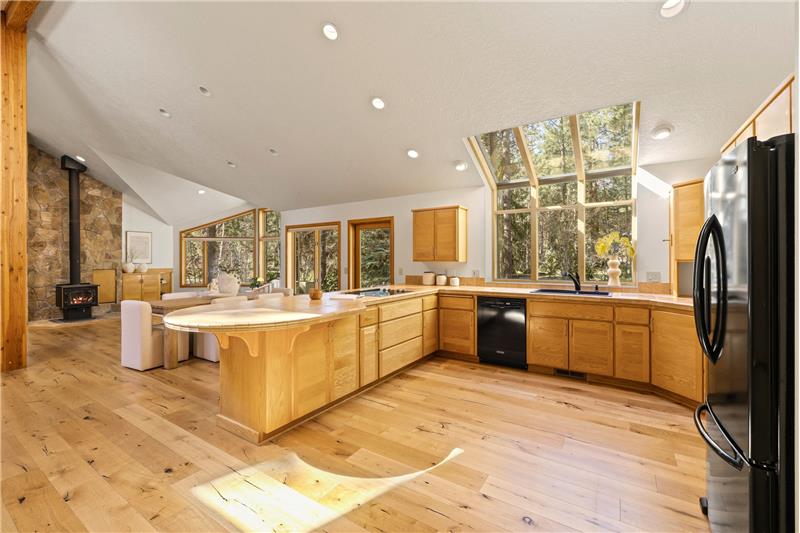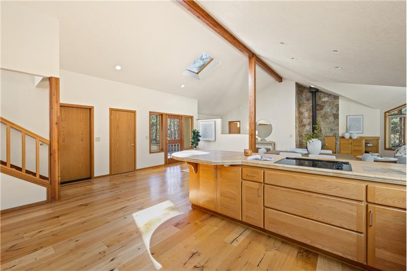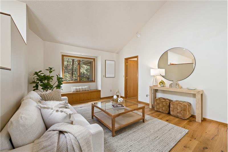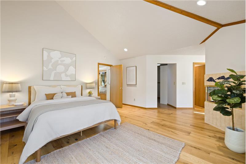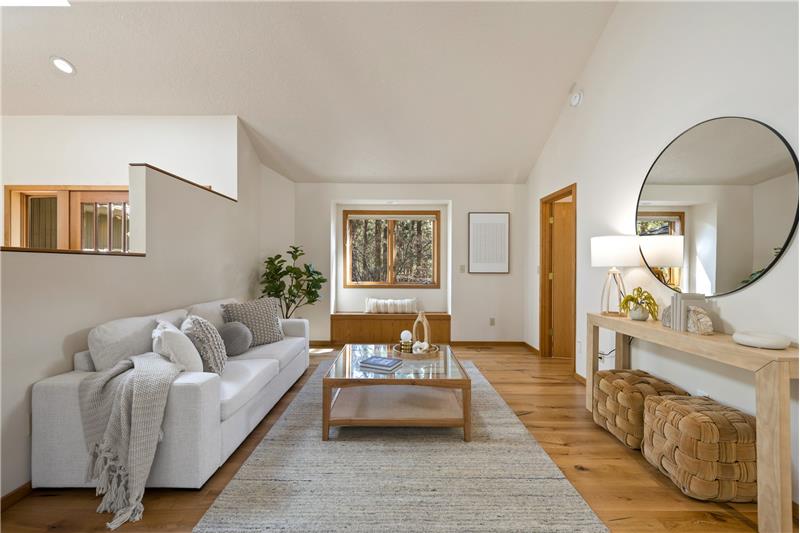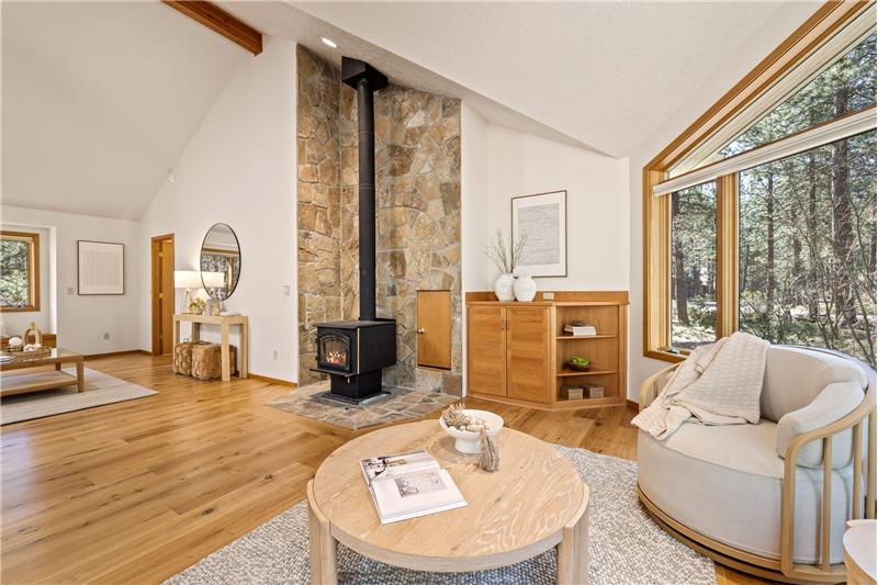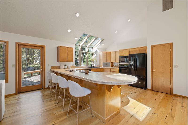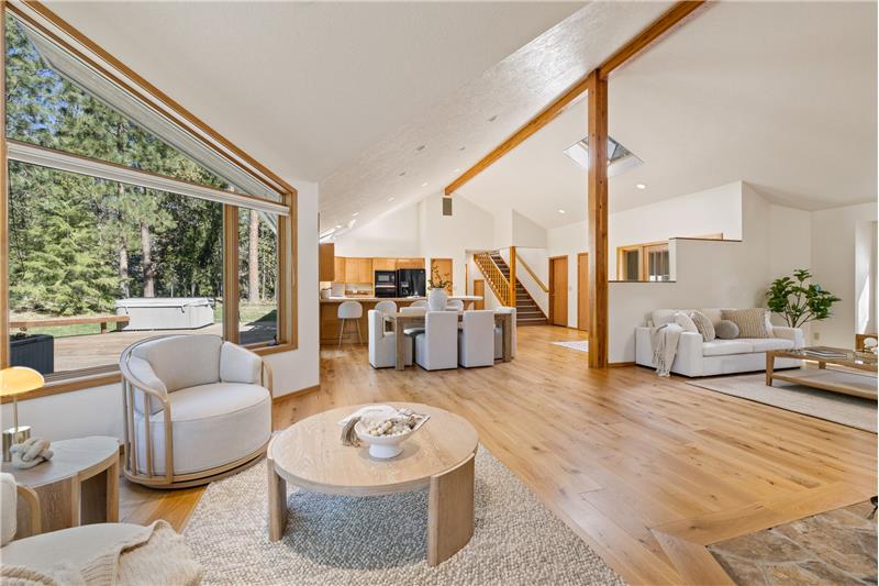 Living like a single level with a primary suite on the main floor, the high ceilings of the great room continue throughout the open floor plan filling the home with natural light. The kitchen is enhanced by a window looking out to the private backyard and expansive deck. An add'l main floor bedroom and bathroom are on the opposite side of the home, with a third bedroom & bathroom integrated into an upstairs bonus living area. Oversized 3-car garage includes room for a workbench & attic storage. Neighborhood amenities include community pool, tennis courts & trails with access to the Deschutes.