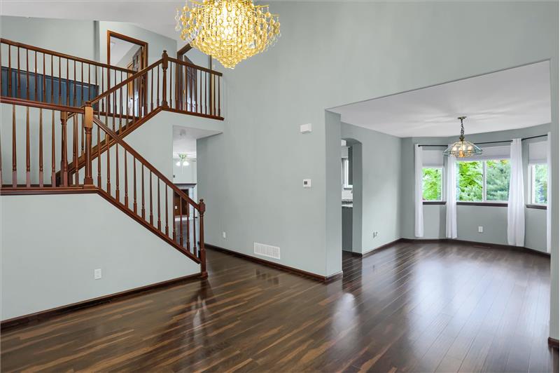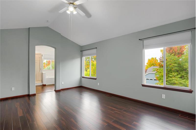 Stunning Corner-Lot Home with Vaulted Ceilings and Modern Elegance. Welcome to this beautifully designed 4-bedroom, 4-bathroom home, perfectly situated on a desirable corner lot surrounded by mature trees and close to scenic outdoor trails. Step inside to an inviting open-concept layout featuring vaulted ceilings, a regal chandelier, and a cozy gas fireplace that anchors the living space. The chef’s kitchen flows seamlessly into the dining and living areas — perfect for entertaining and everyday comfort. The massive primary suite offers a true retreat with a private sitting area, fireplac ...