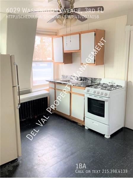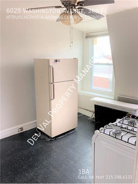 3rd Floor Studio Apartment for Rent Now – 6029 Washington Street, # 3 – Cobbs Creek/Angora area $695/month plus gas and electric Nice-size Living / Bedroom area 1 Bathroom Street parking Eat-in Kitchen has gas stove, refrigerator provided (owner not responsible for repairs to or replacement of refrigerator), ceiling fan, linoleum floor and room for small table and chairs Walk to public transportation (Bus and El), Cobbs Creek Park and Trails, shops and eateries Philadelphia School District Cable ready Flooring is Hardwood and Linoleum