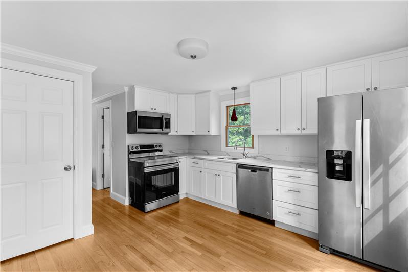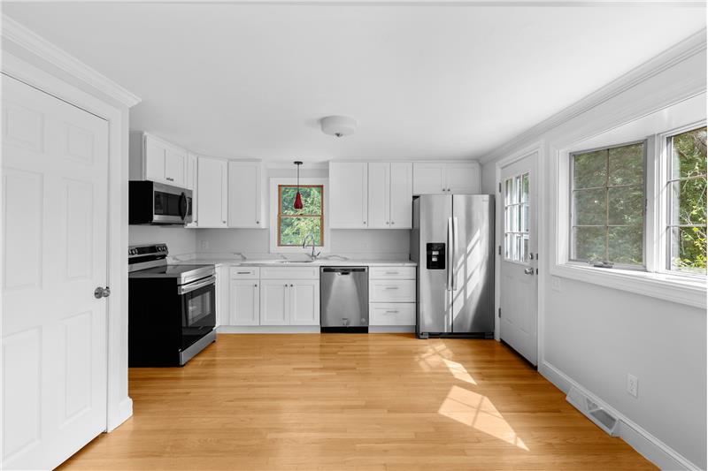 This charming 3 bedroom 1.5 bath home sits on 1.5 acre lot in a friendly neighborhood with newly paved roads and sidewalks, perfect for strolls. Step inside to find a freshly painted interior, new siding and several new windows make this a light and bright home. The updated kitchen/dining area is open with beautiful hardwood floors, fireplaced livingroom and familyroom w/hardwood floors, half bath with laundry. Upstairs you'll find 3 bedrooms, full bath and small nursery area. Looking for extra space? Basement can be refinished with walkout to the huge backyard.Brand new septic to be inst ...