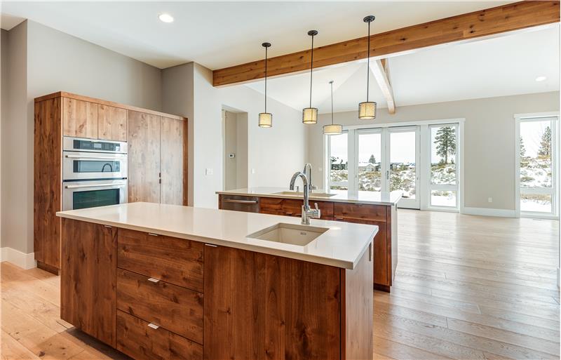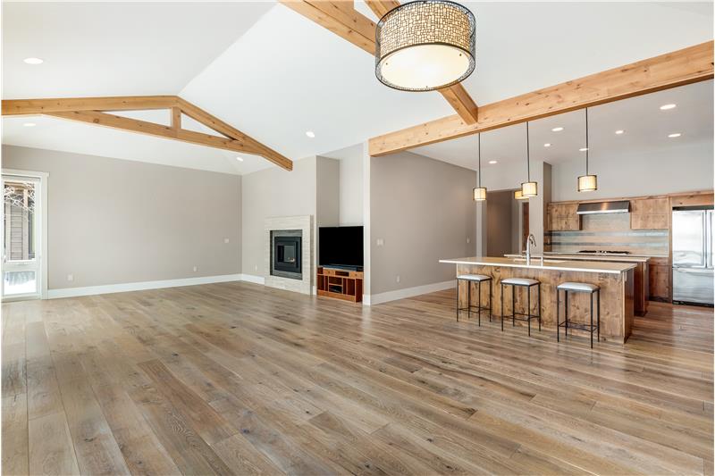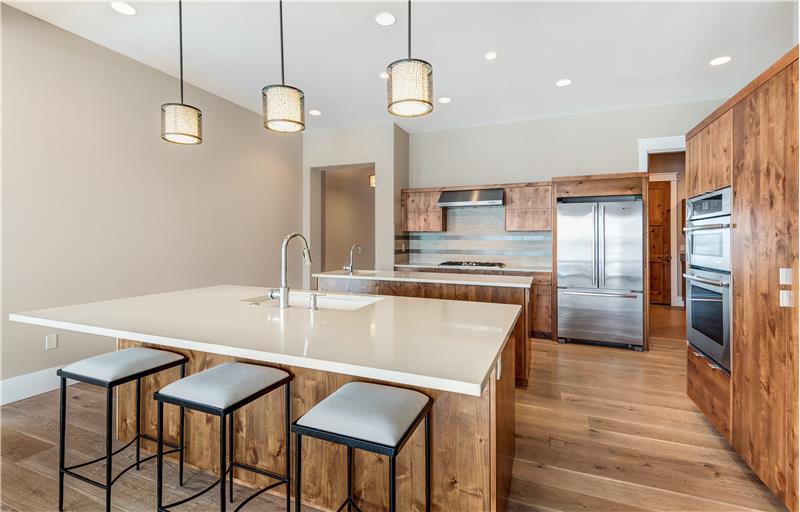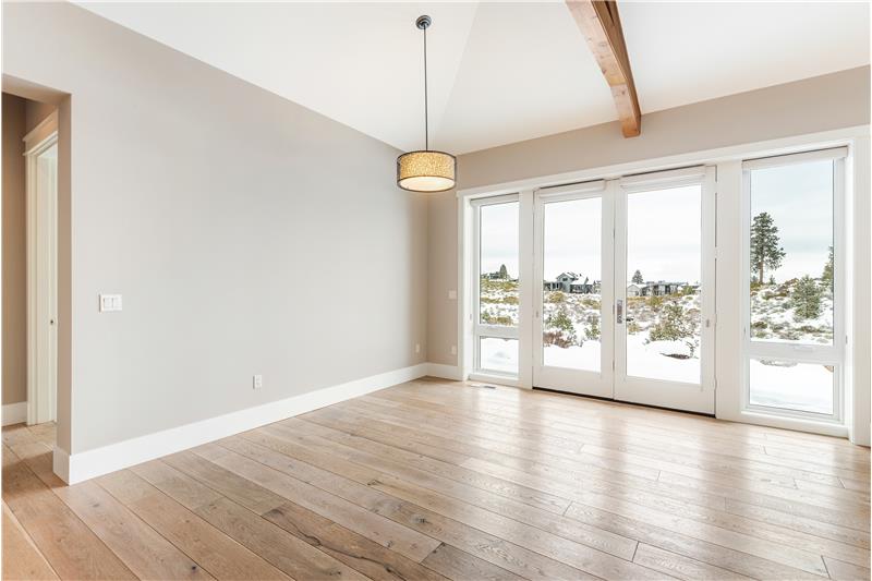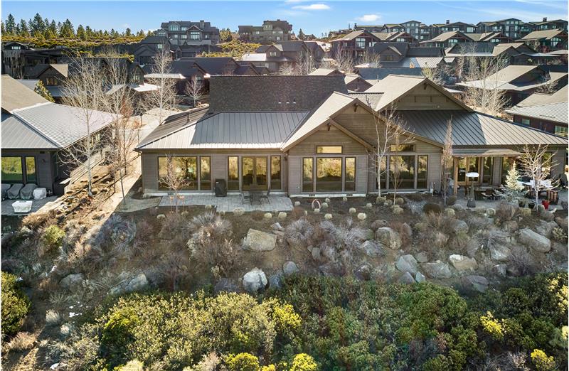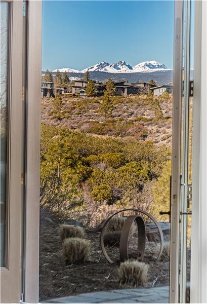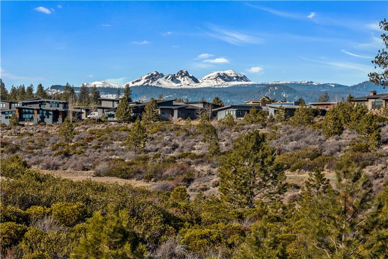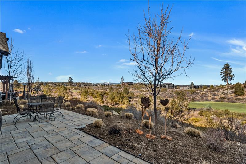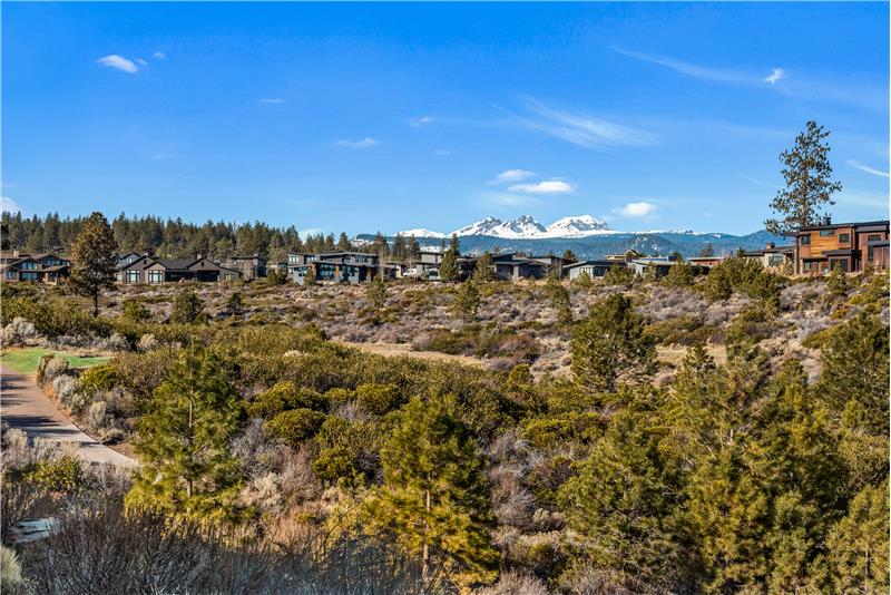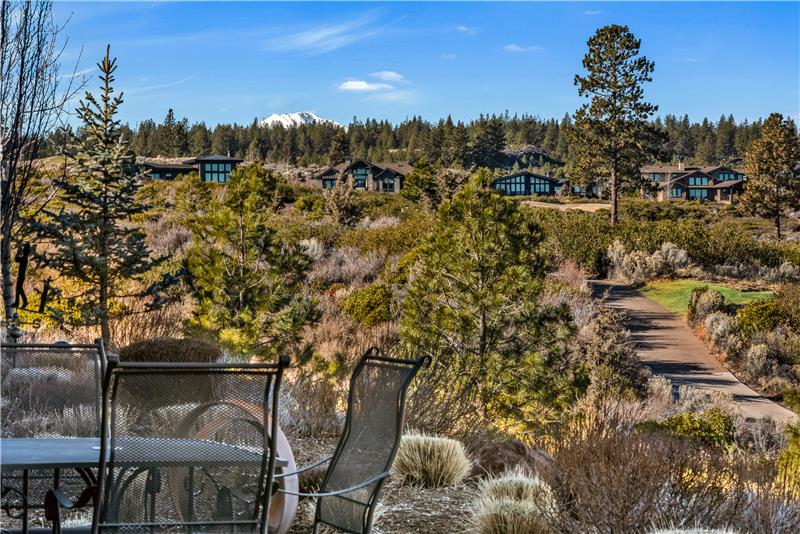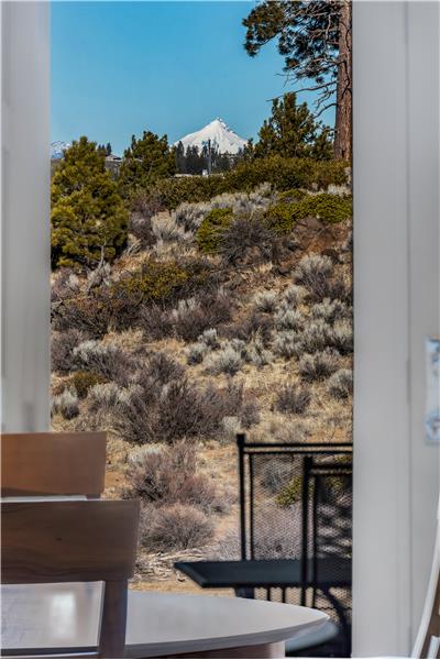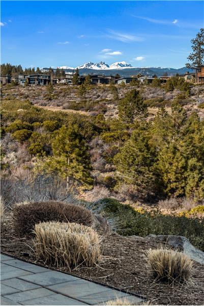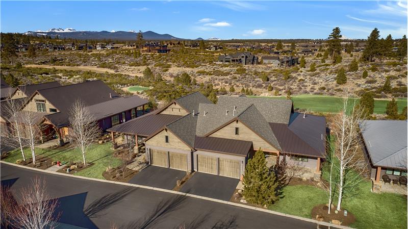 Stunning single level end-unit townhome perched on a natural ridge, offering Cascade Mountains to the west, overlooking Tetherow naturally landscaped hillsides and golf course. Designed for seamless living, the open floor plan boasts high ceilings and expansive windows filled with natural light, bringing the surrounding beauty right into the living space. The primary suite features an ensuite bath with a tiled walk-in shower and walk-in closet. Two additional rooms offer privacy and versatility: one serves as a den or office space, while the other is an ensuite bedroom.