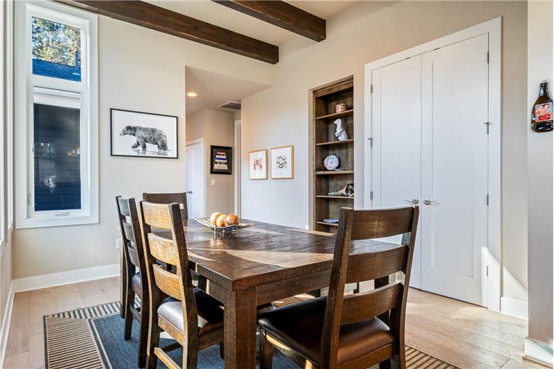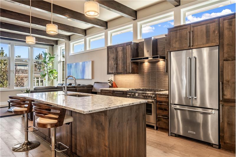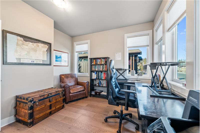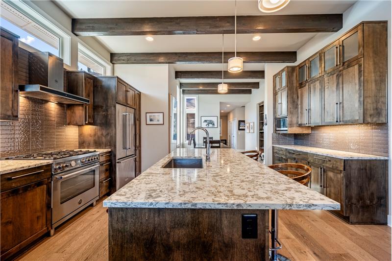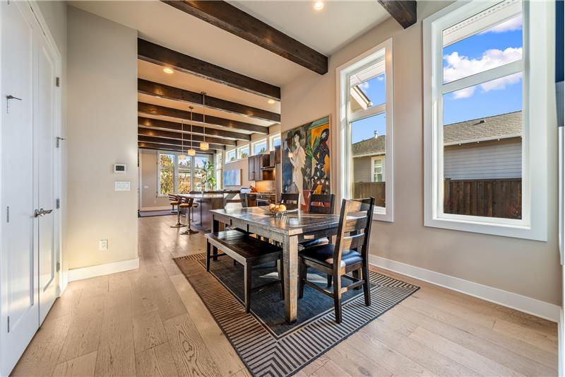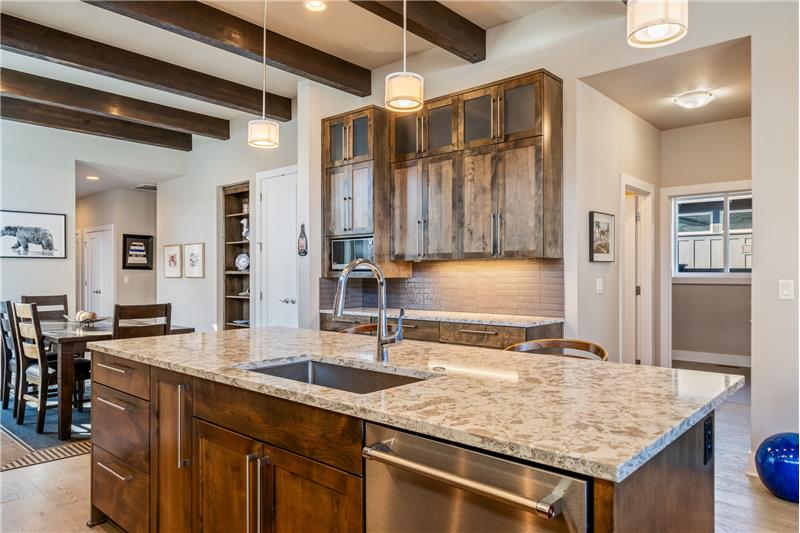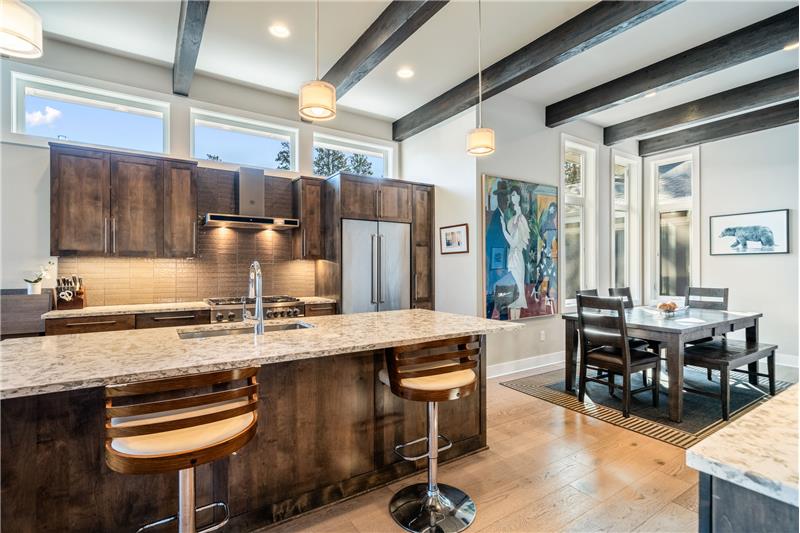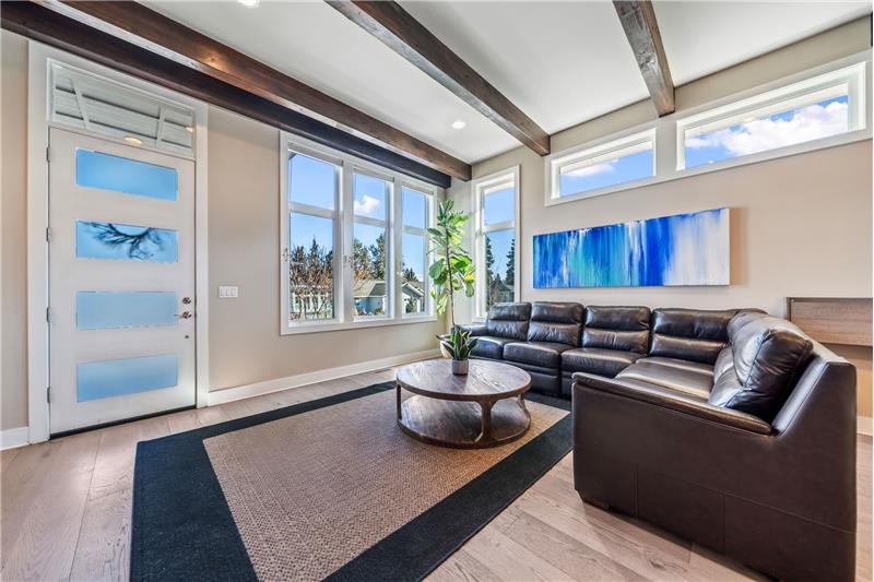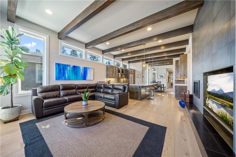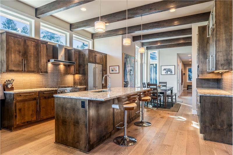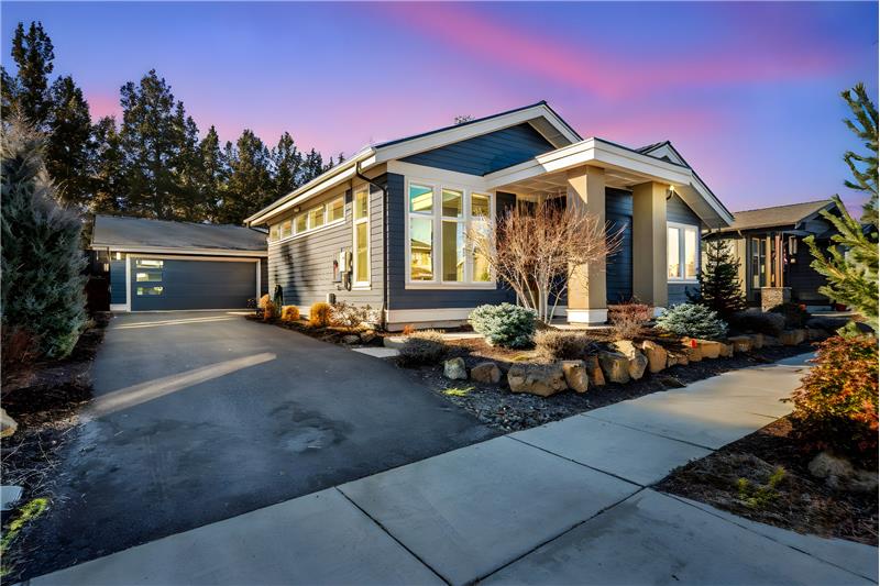 This open, light-filled, single-level home is nestled on a quiet, private street near Bend’s most sought-after amenities, including the Old Mill, the Deschutes River, local parks, restaurants, & outdoor recreation. With stunning eleven-foot exposed beam ceilings and oversized windows, the home invites abundant natural light throughout. The kitchen features a pantry, extra prep area, and a spacious center island. The primary suite, tucked at the back of the home, offers a generous walk-in closet. Enjoy the covered back patio, plumbed for a gas grill & firepit, ensuring year-round outdoor living