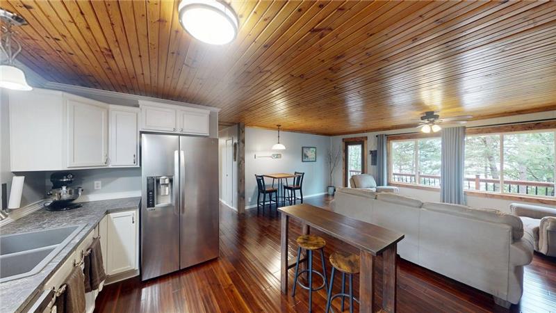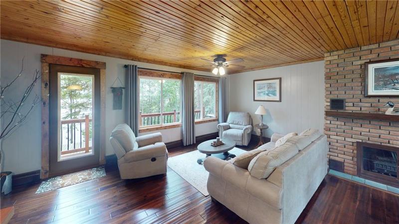Beautiful, private setting with picturesque lake views—perfect for year-round-use, multigenerational living or unforgettable vacations. This uniquely designed home offers 3BRs (all with lake views), 2 1/4 BAs, 2 cozy fireplaces, and 2 full kitchens featuring new or newer appliances. A walkout lower level and full laundry add convenience and flexibility. Enjoy the south-facing screened-in porch w/TV, or relax outdoors with amenities like an outdoor shower and 3 campfire areas. Privacy is abundant, with only seasonal neighbors on both sides. The property sits on a 1 ¼+ acre lot with...