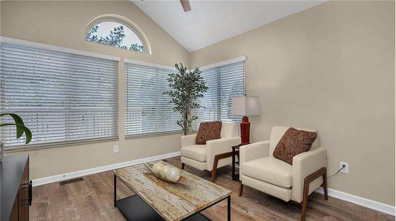 Luxury #BobWebb 3 bedroom condo provides a lifestyle for today's living. Over 3000 sqft of quality living space with 1st floor primary suite, #luxurybath & walk in closet, huge finished lower level with half bath & 2 2nd floor spacious bedrooms & bath. No worries - lawn care & snow removal provided. #Soaringceilings , #sun-filled rooms including #wallsofwindows den/sunroom/flex room. NEW flooring carpet & lighting just installed. #Openconceptfloorplan has massive great room, entertainment size dining room & huge eat in BRAND NEW decorator cabinet kitchen with extra bank of cabinets.
