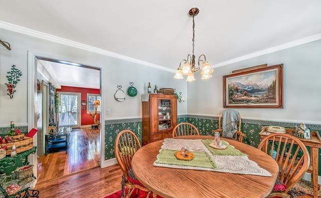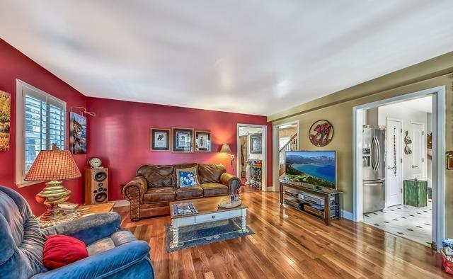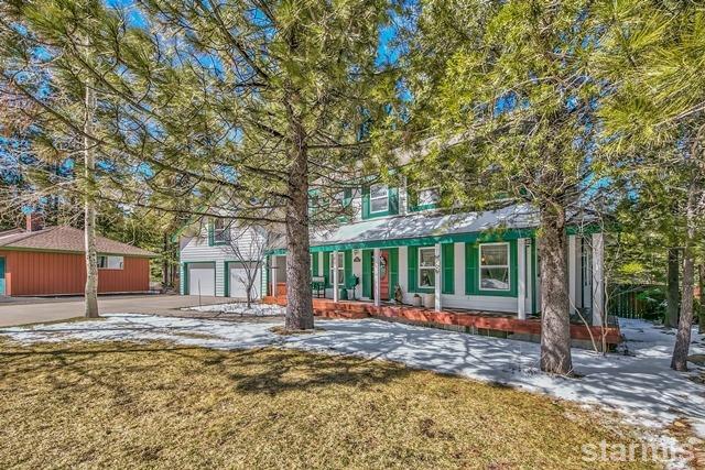 Tahoe style Colonial home sits on an angle on this beautifully and landscaped third acre lot with a great wrap around deck. A large 2 car detached garage attaches to the home with a covered breezeway. Enjoy your easy commute to your home office by going through the breezeway and up the stairs to the huge bonus room over the garage. You can now Zoom call quietly for your work appointments from this private space. Gorgeous wood floors enrich the feel of the living, dining and family room. The cozy family room features a cute red wood stove and plantation shutters. There are separate dining room