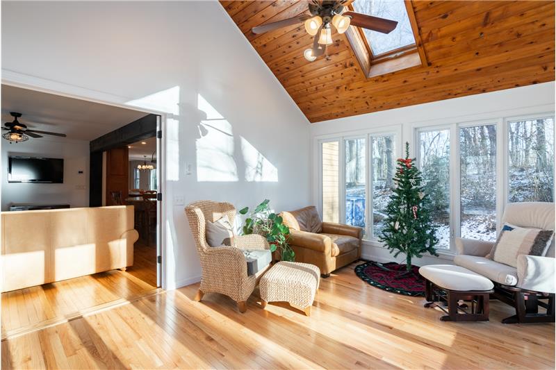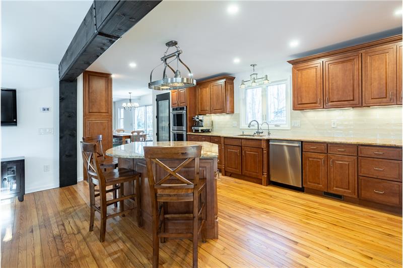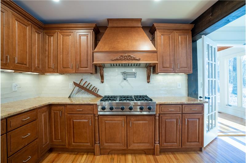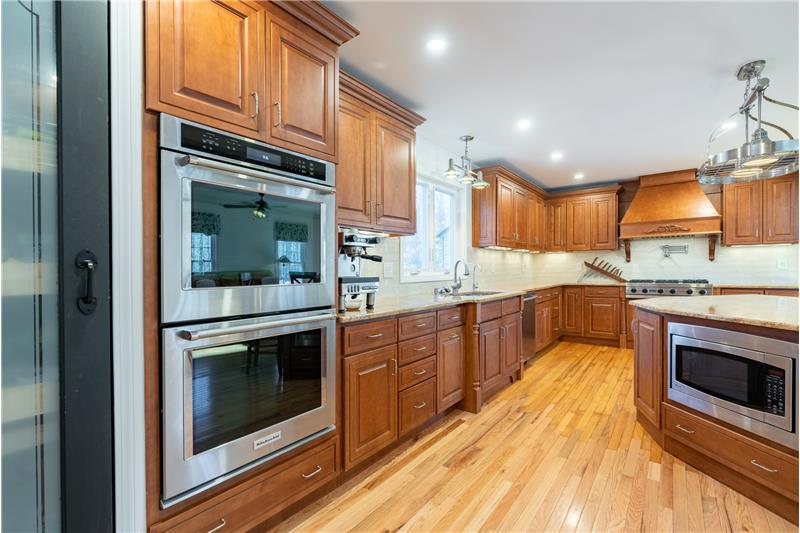 This 2300 sf colonial is ready to move right in and is a true showstopper. Tasteful, charming and welcoming describe this lovely home perfectly. The 1st floor was designed to have an open floor plan. The kitchen setup is complete with a custom center island, granite counters, Viking gas cooktop, built-in convention/convection oven, subzero fridge, recessed lighting, separate pantry, and SS appliances. Tons of cabinet and storage space throughout. The formal living area has French doors that lead to the heated/cooled, enclosed den/sitting room with vaulted ceilings and skylight.
