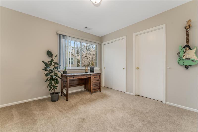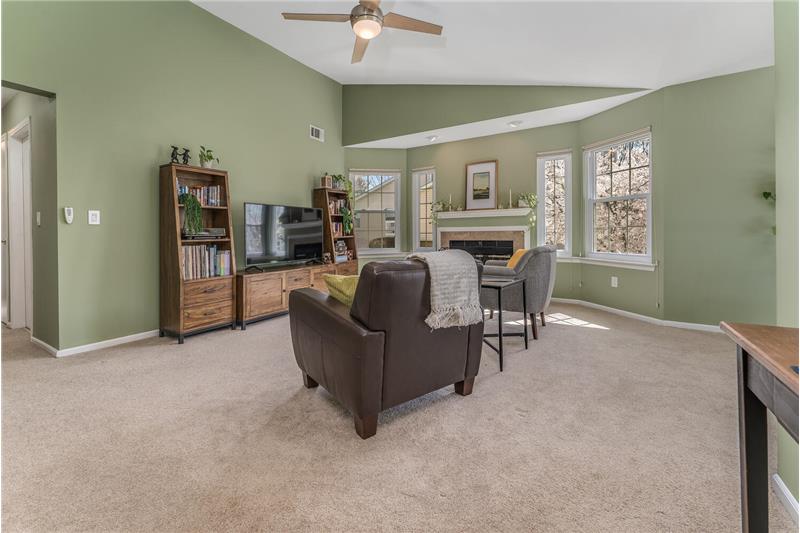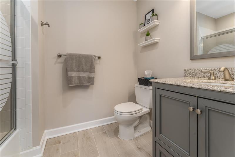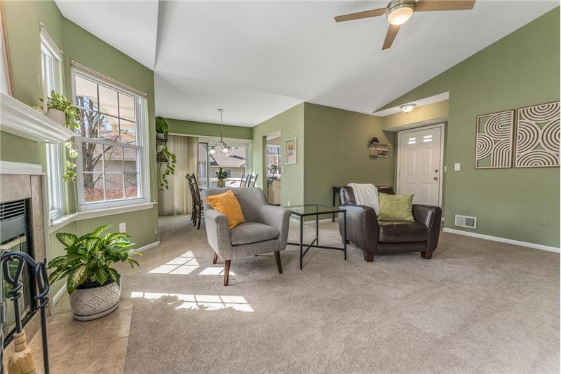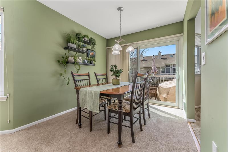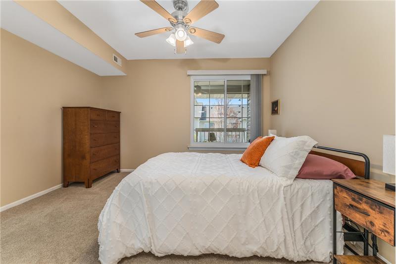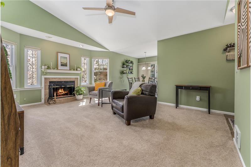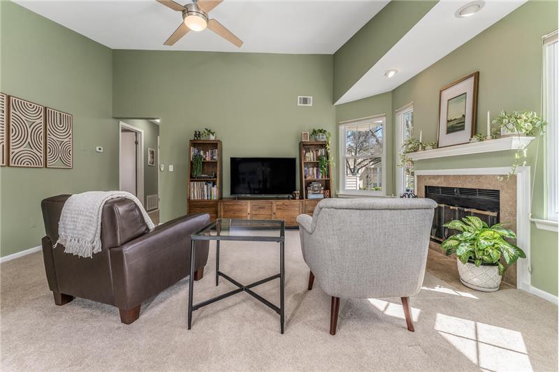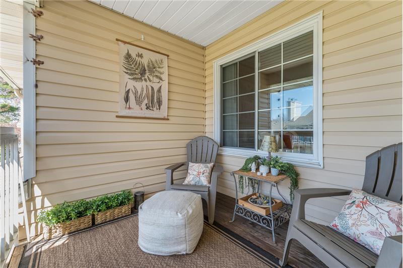 Wonderful second-floor location enjoying ample natural sunlight, this end-unit Fieldstone B model is move-in ready. Kitchen updated with granite counters and stainless steel appliances. Living room with a vaulted ceiling and wood-burning fireplace. Each bedroom connects to a full, updated bathroom. This lovely home features two distinct outdoor spaces: first, an open & sunny expanded deck, and second, a private porch with shaded seating area. Attached garage connects via interior staircase. Full-size laundry in-unit. Don't miss out on this well-maintained, turn-key home.