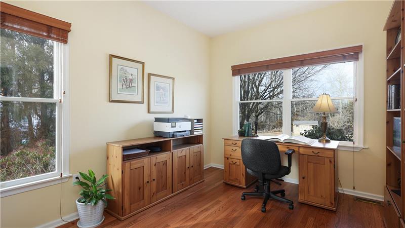 Welcome to this stunning 4-Bedroom plus Office, 3-Bathroom home, offering approximately 3,200 sq. ft. of beautifully designed living space. Nestled on a wooded lot, this property features two patio areas, perfect for outdoor relaxation. Step inside to gleaming Hardwood Floors (Foyer, Living Room, Dining Room and Office refinished in 2025). The spacious Family Room also with Hardwood Flooring, boasts a cozy gas fireplace, creating a warm and inviting atmosphere.