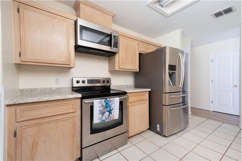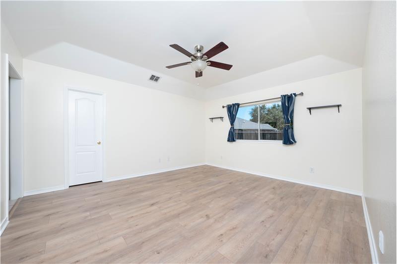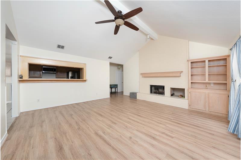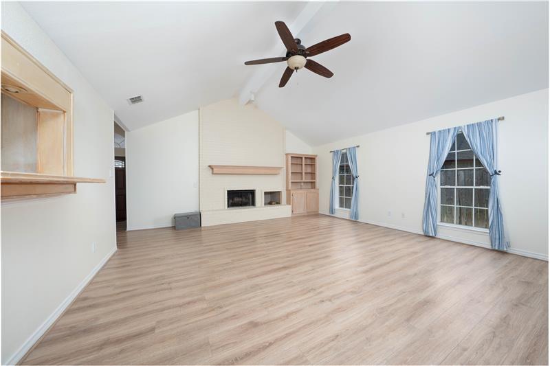 Welcome to this bright and spacious 4-bedroom, 2-bath home in desirable Brighton Village. Freshly painted and updated in May 2025 with vinyl plank flooring throughout most of home. Living room features vaulted ceiling and cozy floor-to-ceiling fireplace. The kitchen has custom cabinets, stainless steel appliances (2021); and a bar that opens to the living room. The primary suite boasts an updated en-suite bath with double vanity and hugh walk-in closet. All bedrooms are a nice size. Situated on a large cut-de-sac lot with mature trees and room for pool. Close to schools and shopping.