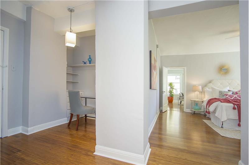 Welcome home to 'The Hamilton' a signature Art-Deco San Francisco landmark located in the heart of the city near Union Square and thriving Mid-Market. Unit 302 is a large, bright 4 room rear facing 1 bed, 1 bath condo with super-sized living room, fun cozy dining room plus office nook & den. Cleverly designed with alcoves, built ins, upgraded flooring and walk-in closet. The building boasts superb amenities and common areas which include a ballroom, fitness center, conference room, 24-hour Front desk, laundry facilities and 16th-floor sky deck with breathtaking city views.