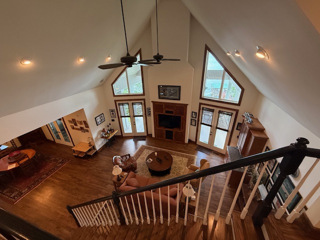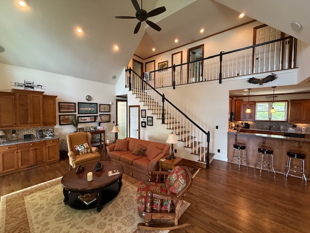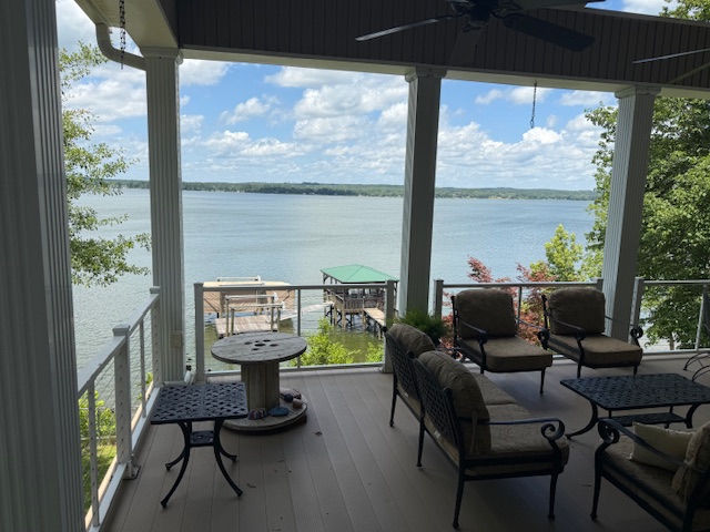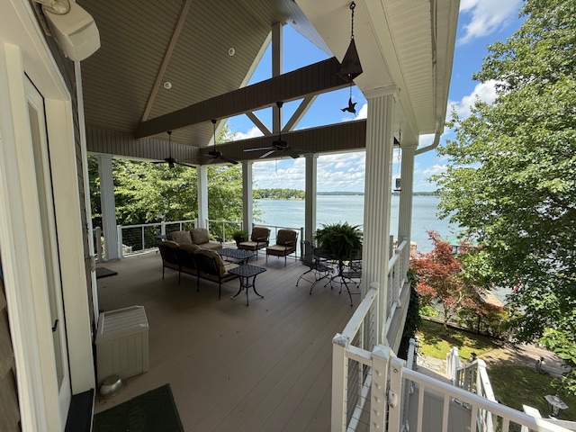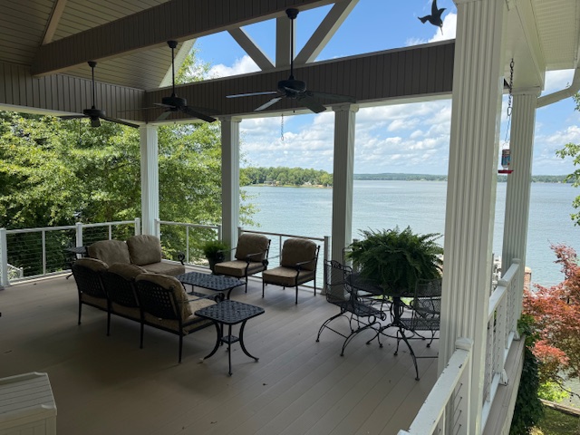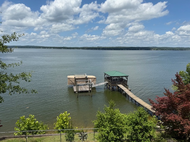 Breathtaking main lake view. Walk out on the huge covered porch overlooking up and down the lake. Custom built, one owner home is magnificent with hardwood floors, open kitchen, dining, and living area. Four bedroom with master, and second bedroom on main floor. Sunroom/office with separate heating/cooling. Make your way down to shoreline with a sandy beach area, and a dock with covered sitting area, two boat lifts, and floating dock area. Bring your family and friends with plenty of room for everyone. Sitting on the porch with that first cup of coffee..... Priceless!