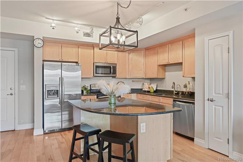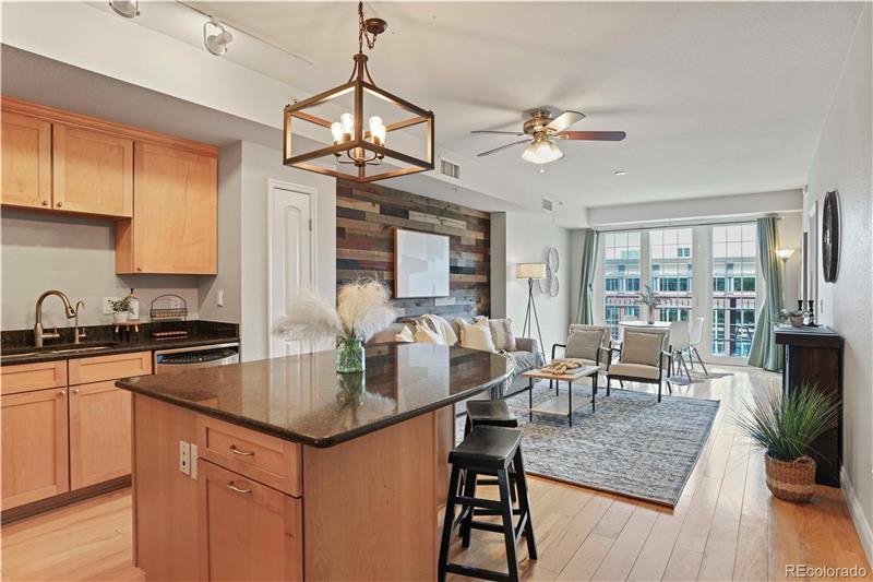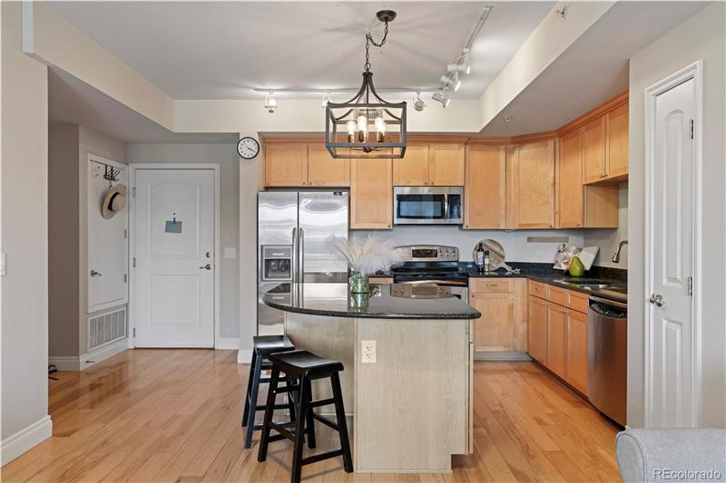 This 1-bedroom/1-bath condo has it all. In addition to the main bedroom, there's a custom-built high-end cherrywood murphy bed in the office that's perfect for guests or to use as a second bedroom. The kitchen features granite countertops, stainless steel appliances, and a kitchen island. The living room has beautiful hardwood flooring and a ceiling fan. Enjoy the views of South Table Mountain and Lookout Mountain on your balcony. This location is incredible, as this building backs to Clear Creek and you're one block from Washington Avenue with its array of restaurants, stores and more.