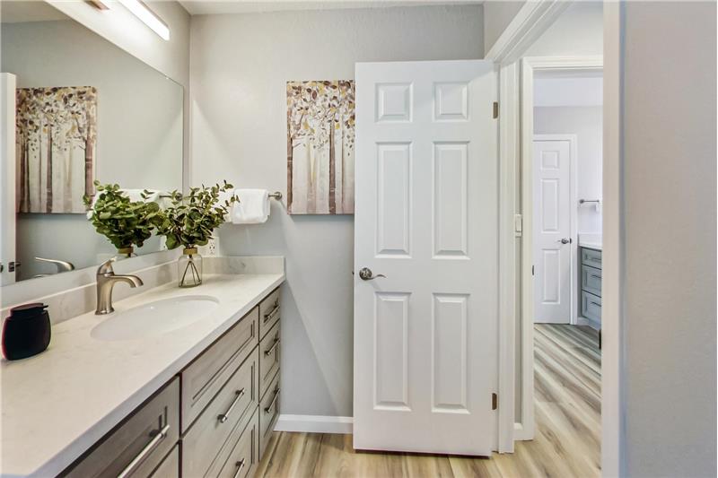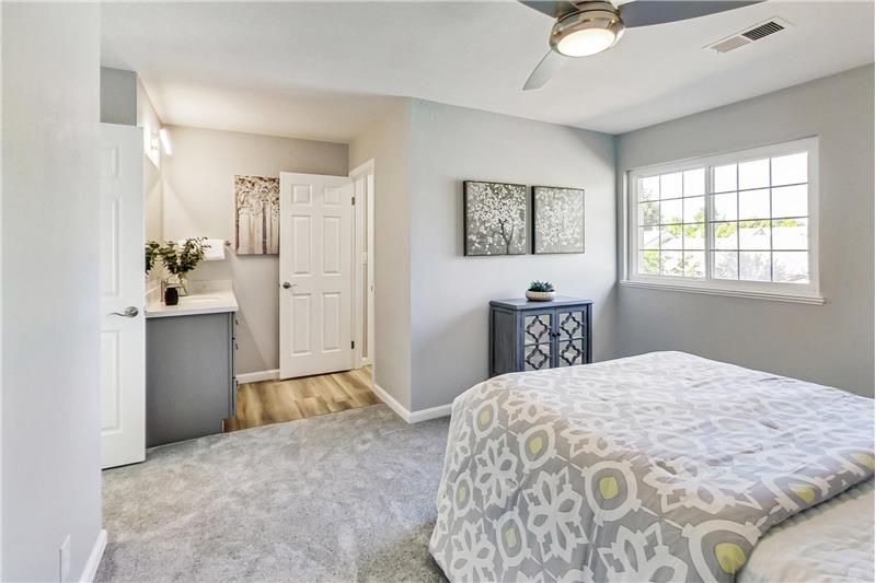 New 2023 Design colors & matching materials used in this home flow & fully compliment each other, making this an “11” on a 1-10 scale! Large Bancroft Village 2 story model with gated courtyard entry, on a quiet court that you have been waiting for! Mature landscape. Spacious modern kitchen & full pantry. 1 BR & 1 BTH located downstairs - perfect for home office or guest room. Downstairs bath is designed for max storage, yet feels spacious. Accent trim on all window sills & fireplace mantle, vaulted ceiling, updated door trim, modern fan fixtures, 6 panel doors, & much more. Large master suite.