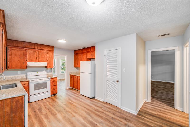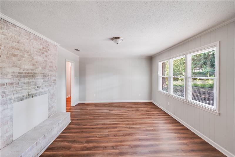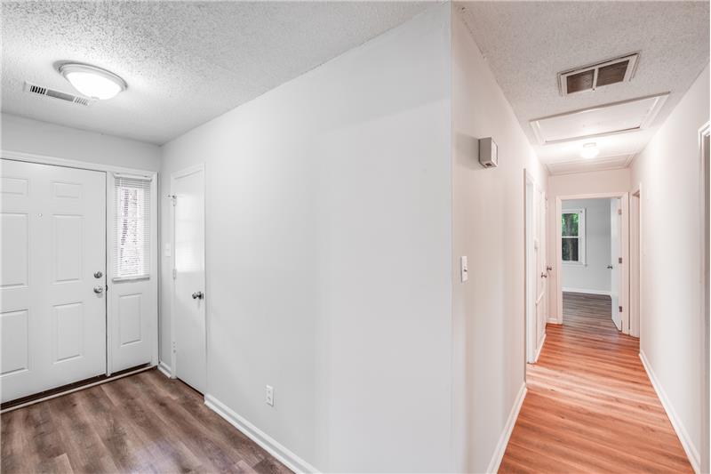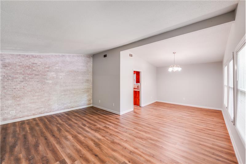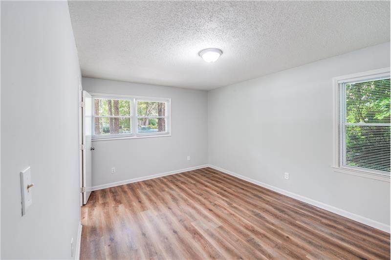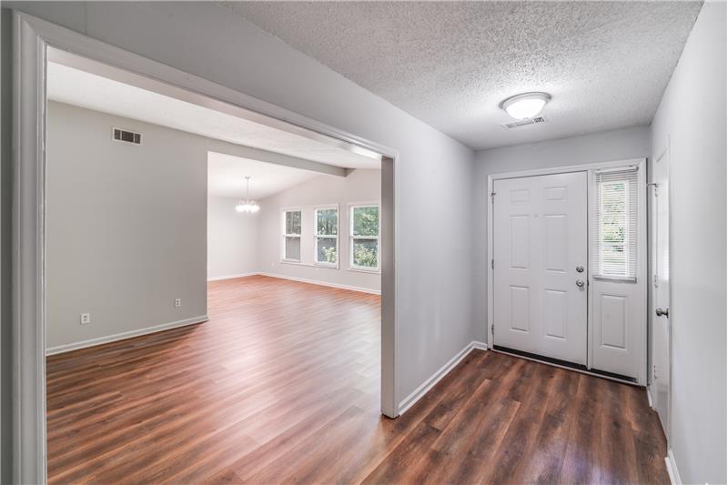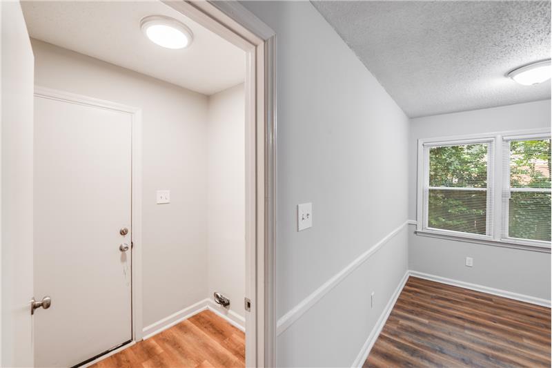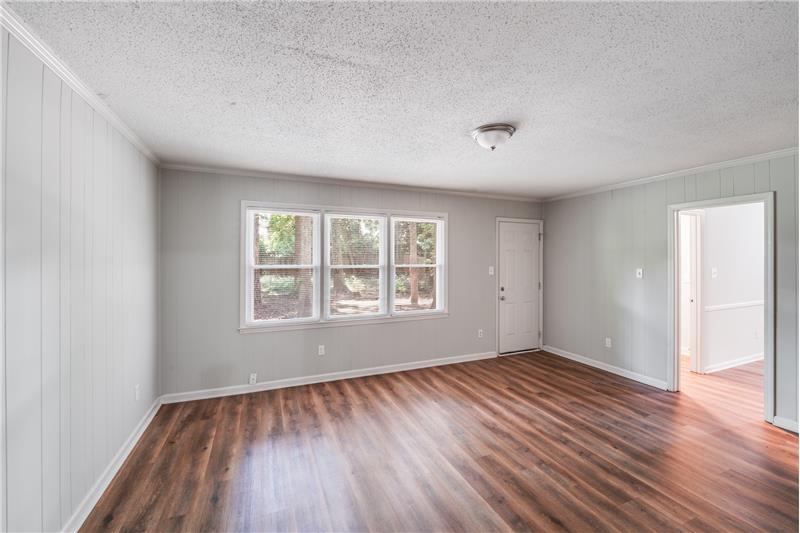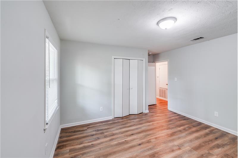 Welcome to this charming 3-bed, 2-bath home in the heart of Charlotte, NC. This move-in ready residence features durable vinyl plank flooring throughout, combining modern appeal with low-maintenance living. Enjoy the privacy of a splitbedroom floor plan and extra storage. The kitchen features granite countertops, ample cabinetry, and a layout ideal for cooking and entertaining. Adjacent to the kitchen, the dining area boasts a soaring vaulted ceiling, creating an inviting and spacious atmosphere. Text "OldPost6513" to 704-870-2369.