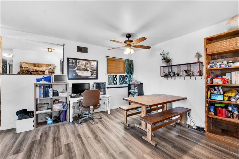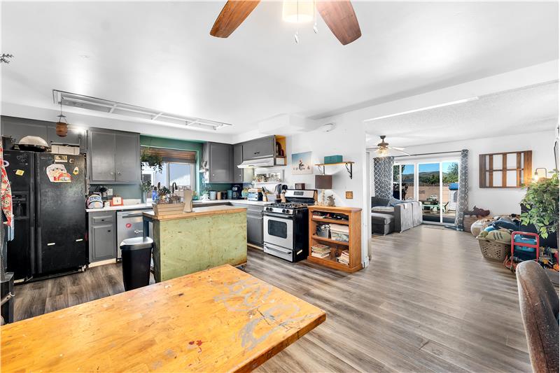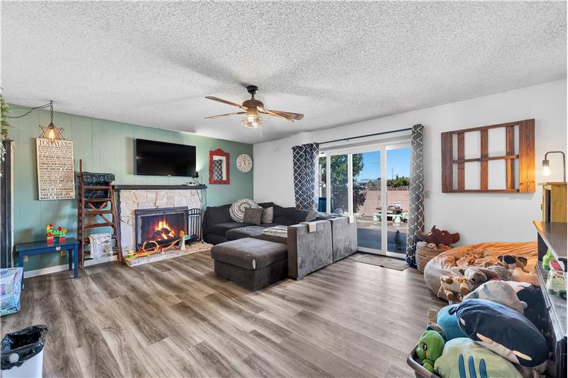Great potential in a prime East Simi Valley location! This 4-bedroom, 2-bathroom single-story home offers a fantastic opportunity to update and make it your own. Offering 1554 sq. ft. of living space and sitting on a 6,098 sq. ft. lot, the home features a spacious living room with a rock-faced fireplace and a large slider that leads to the backyard. The open kitchen includes a gas cooktop/oven, dishwasher, farmhouse-style sink, and wood-like laminate flooring, with an adjacent dining area and ceiling fan.