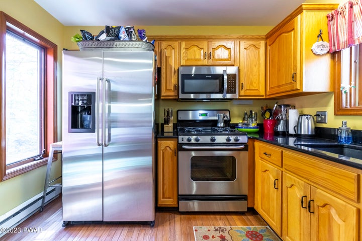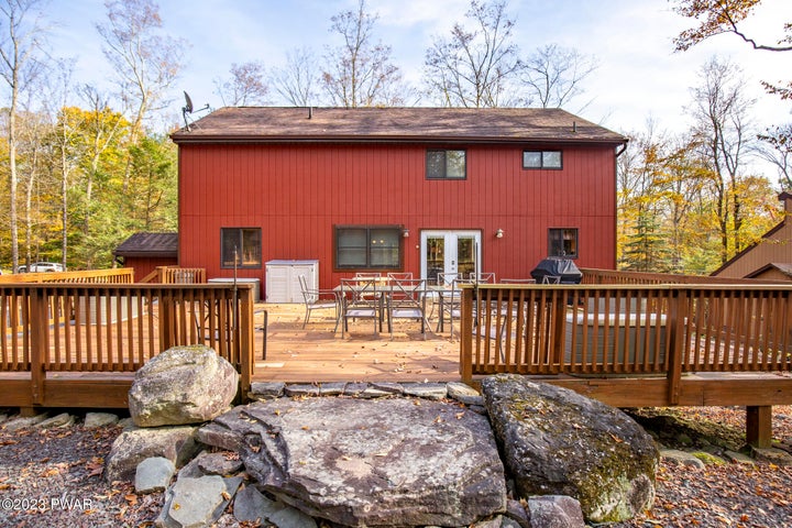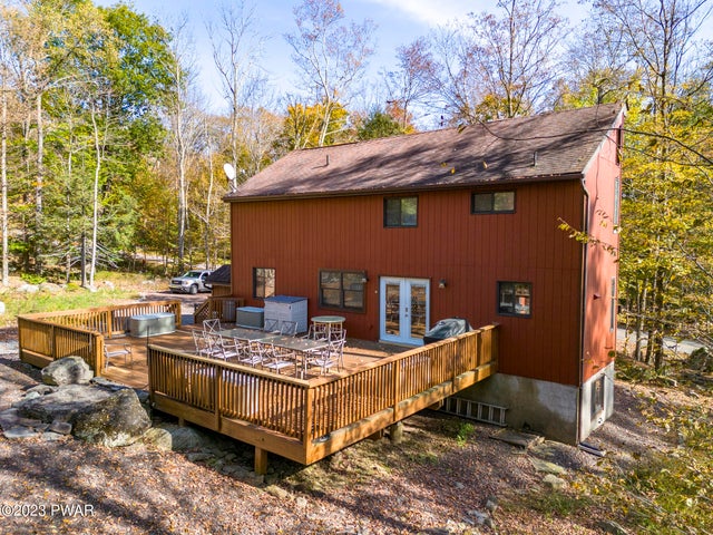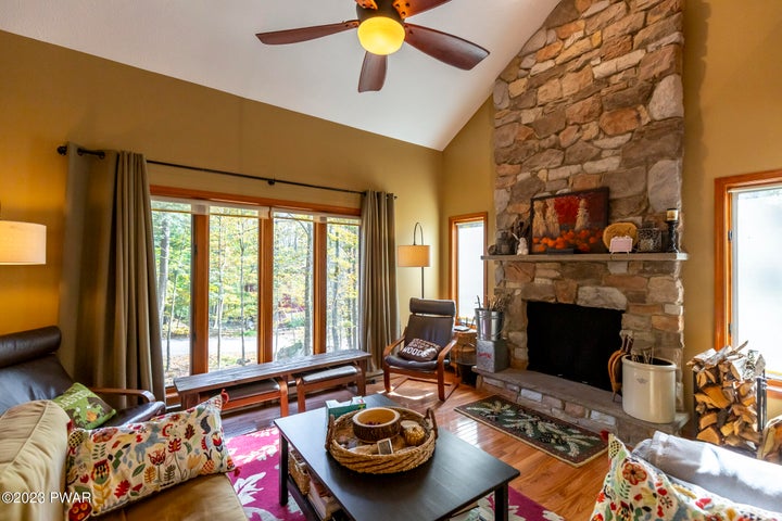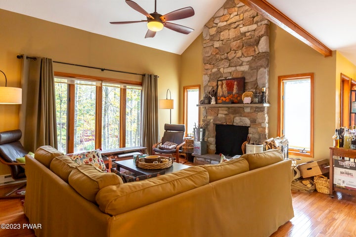 Exquisite and spacious 4-bedroom home nestled in The Hideout, a Gold-Star awarded community. Inside find stunning hardwood floors throughout the main living areas. The kitchen, adorned with a striking granite countertop, is equipped with top-of-the-line stainless steel appliances. The centerpiece of the living room is a magnificent floor-to-ceiling wood-burning stone fireplace. Upstairs awaits a large loft featuring tongue and grooved wood ceiling. Outside, a vast party-sized deck offers ample room for entertaining in style. Another standout feature of this property is the back-up generator!