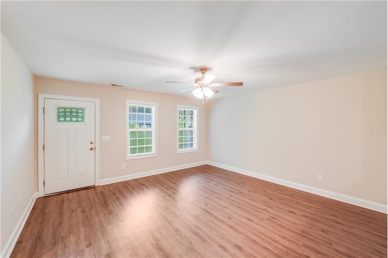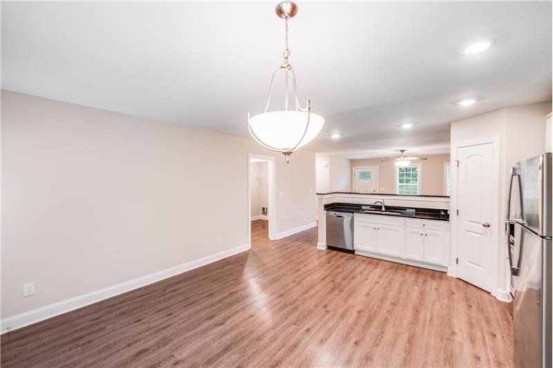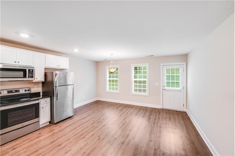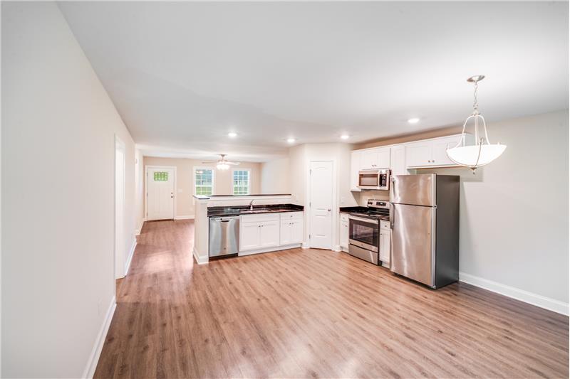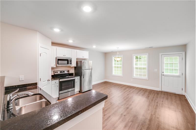Welcome to this charming 4-bed, 2-bath home located in the Winterhaven neighborhood of Concord, NC. Step inside to find modern vinyl plank flooring throughout the main living areas and cozy carpeted bedrooms for a warm, inviting feel. Natural light pours in through large windows, creating a bright and airy ambiance throughout the home. The kitchen is a standout feature, boasting crisp white cabinetry, stainless steel appliances, and a pantry for extra storage, perfect for everyday living and entertaining alike. Text "Sylvan671" to 704-870-2369.