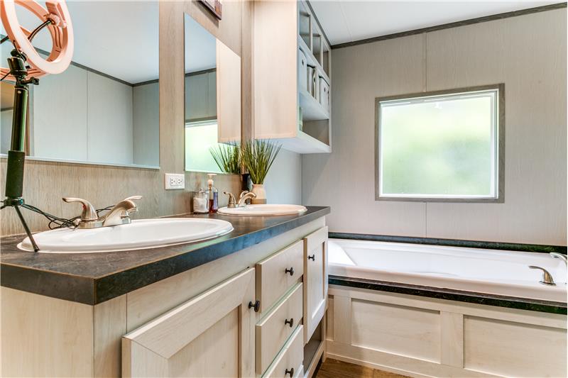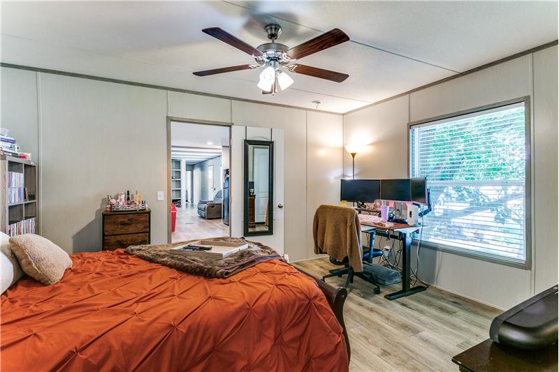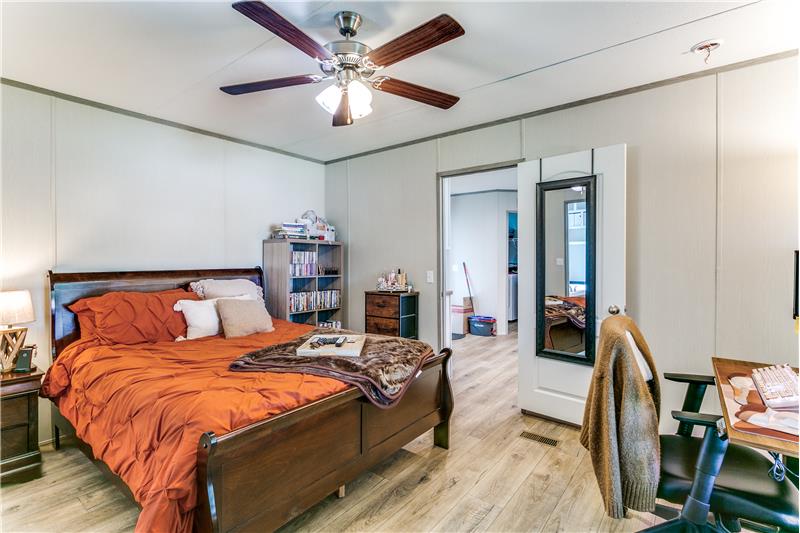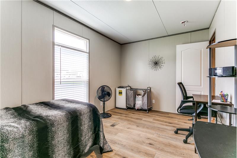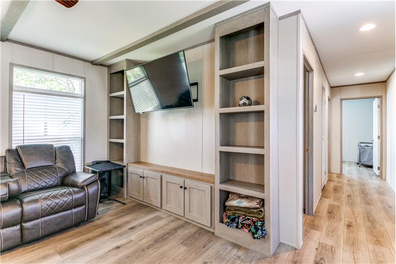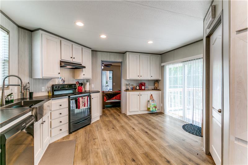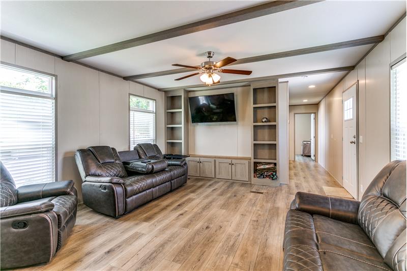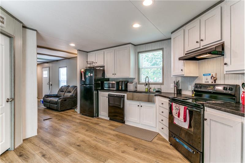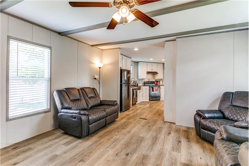 Open House, Sat, 10/8, between 1:00 - 3:00 p.m. Discover the charm of this 2022 mfg home (like new!) in the Summit Oaks community, located in a cul-de-sac, and featuring a neutral color scheme & modern fixtures thru-out. This home boasts various great features, together with an efficient & open floorplan. The living room has decorative ceiling beams and built-ins for a modern, sophisticated look. The kitchen has deep SS farm sink, quartz-look formica counters, quality wood cabinets, and wood-look vinyl flooring.