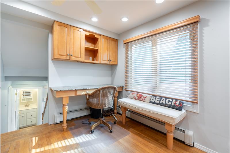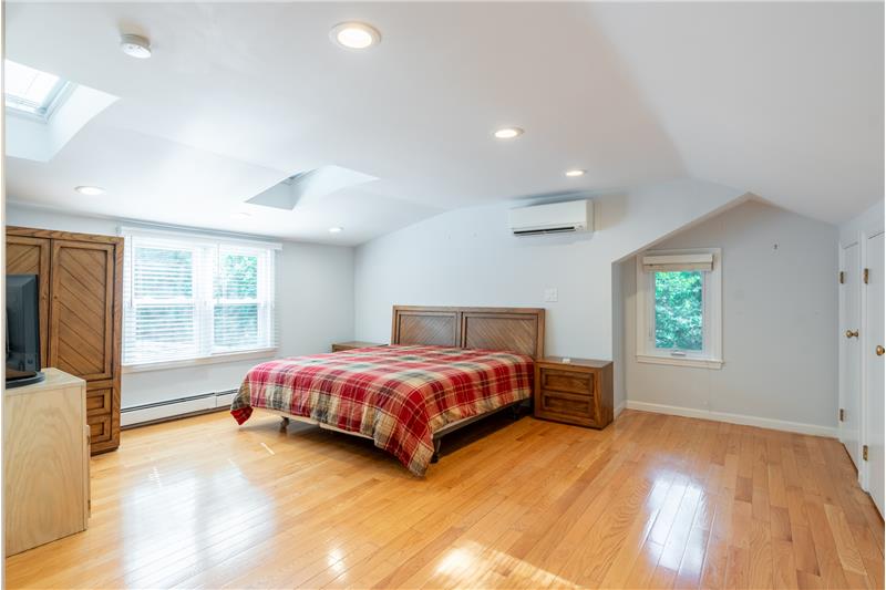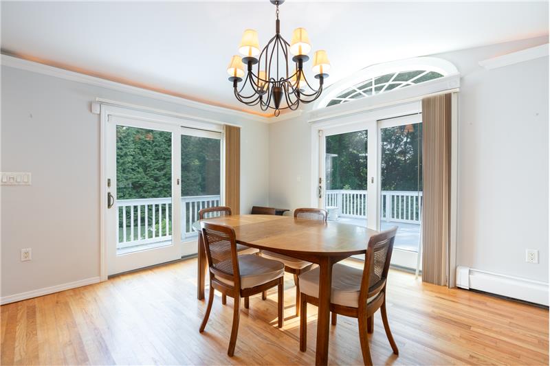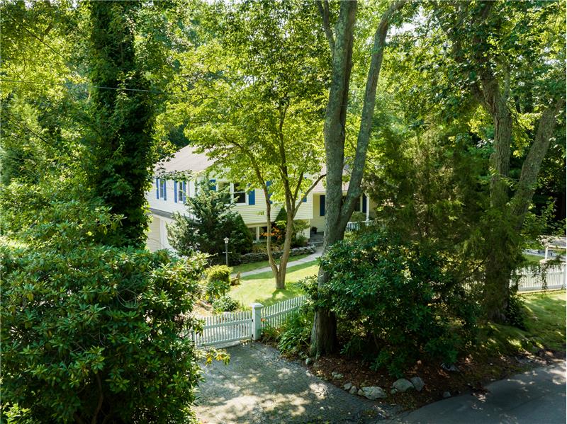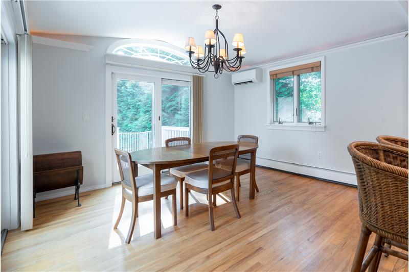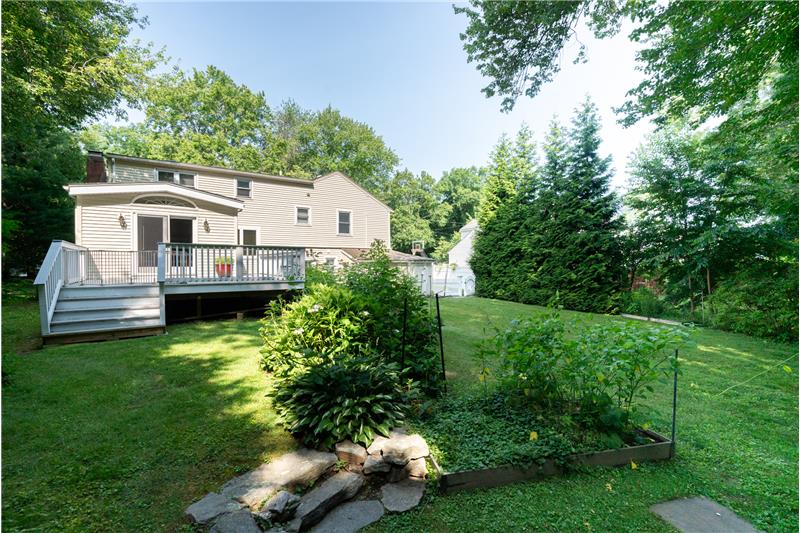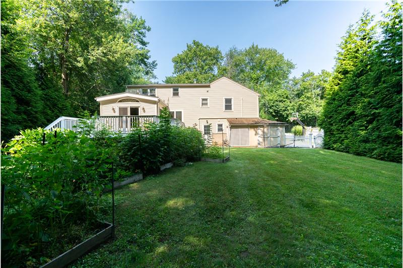 Split-level home on 1/2 acre/fully fenced in lot, with an excellent layout is located in a very desired area just steps to the water and 1-mile from downtown Madison. Last home on dead-end street. Light and bright everywhere. Hardwood floors throughout. The spacious eat-in kitchen is complete with granite countertops, island, double wall oven, propane cooktop, ample cabinet and counter space, dining area and sliders leading to the L-shaped deck. Living room with fireplace. 3 bedrooms on the 2nd floor, full bath and a huge primary bedroom suite nestled up on the 3rd level.
