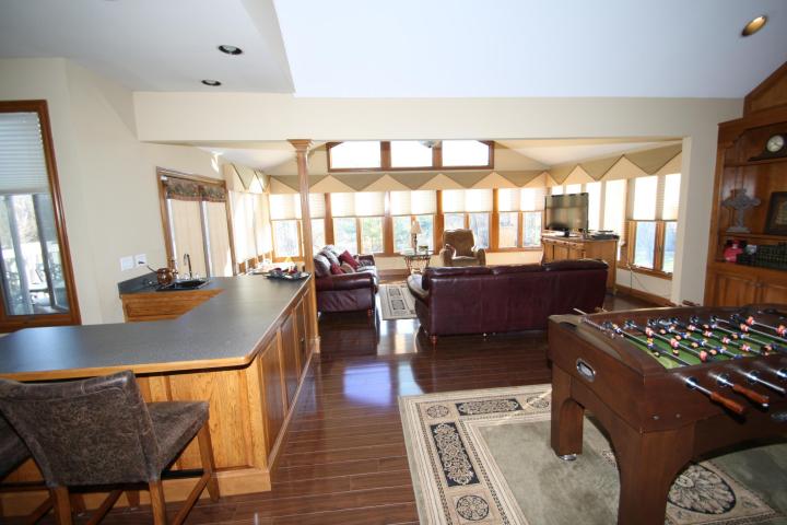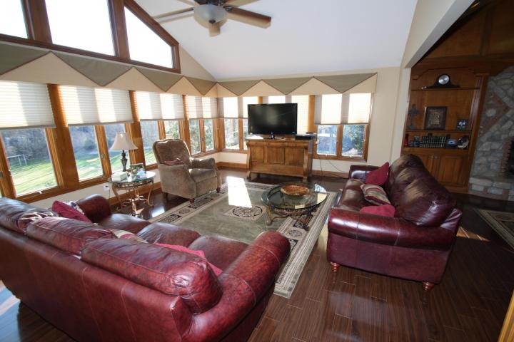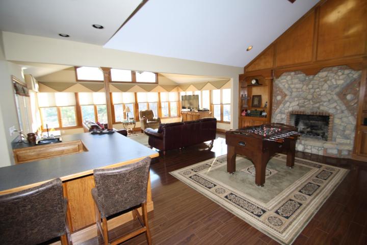 Enter the foyer with bridal staircase,rich woods, 1st flr office with wainscoat & built ins,center island dine in kitchen w/ abundance of cabinets, holiday size dining room & family room with walls of windows with million dollar views. 5 Bedrooms/ potential of in-law suite, bonus room! Master retreat w/dual walk in closets-Relax on your paver patio or deck. Enjoy the lower level walk out with entertainment bar & full bath & BR. New AC 2014, updated SS appliances, Roof 2011,Engineered hardwood 2011 w/ 6'' baseboards.6 panel doors, quality throughout. Custom Italian stone elevation & fireplace