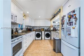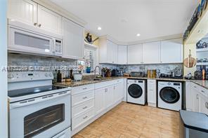 This energy-efficient home features a new metal roof, solar panels, and impact windows for ultimate savings and peace of mind. The updated kitchen includes granite countertops and white wood cabinets.