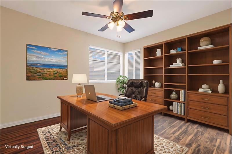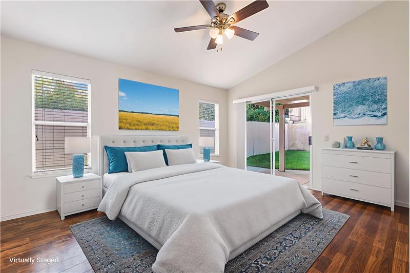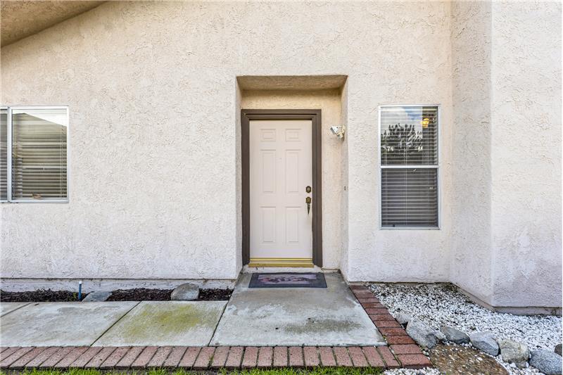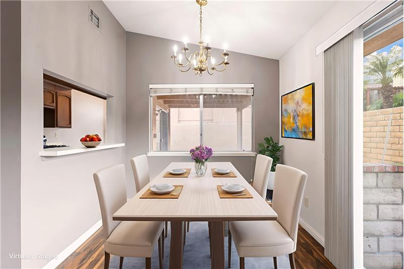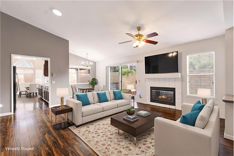 Set on a hilltop cul-de-sac, this single-story Varsity Park Patio Home welcomes you with a lush front lawn, stone-accented garage, and a brick-lined walkway leading to a gated courtyard entry. Inside, wood-like laminate flooring flows seamlessly throughout, creating a unified backdrop for the home’s light and open layout. The living room features vaulted ceilings, solar tubes, and a tile-accented fireplace, with a slider offering views of the courtyard. Just off the living room, the dining area includes a pass-through to the kitchen, making everyday meals and entertaining convenient. The ...
