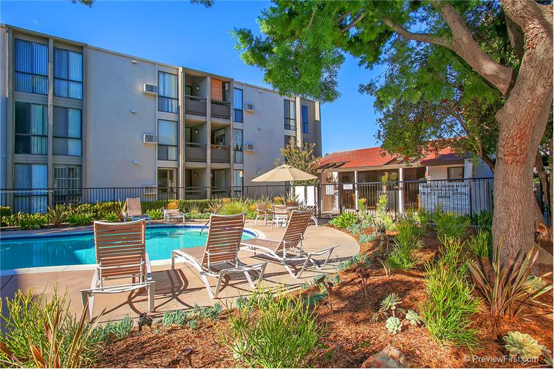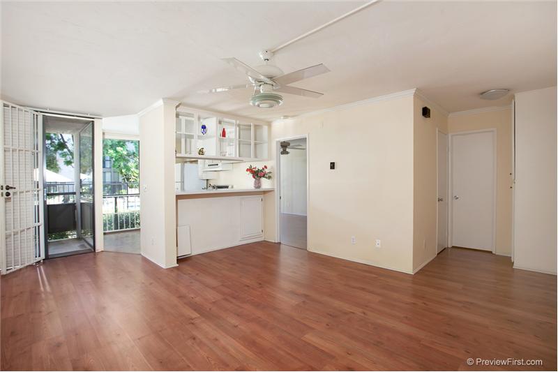 Why rent when you can own this fresh, clean & ready to go one bedroom/one bath condo. Bright & cheerful with gleaming cherry wood laminate flooring, freshly painted interior & crown molding. Kitchen features a pass through counter with bar seating, bright white cabinetry with custom designer shelving. Ceiling fans, track lighting plus new window air conditioner. Master bedroom is spacious with over-sized walk in closet. Upgraded bath & kitchen fixtures. Complex features heated pool, spa, dry sauna, gym &clubhouse.Great location,dining, Mission Trails park & Lake Murray. $179,000-$189,000.