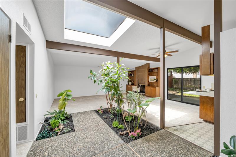 This 2 bed, 2 bath mid-century modern home has just been freshened up with brand new interior paint, roof and carpet - making it ready for its next owners! Whether you are downsizing, looking for an investment property or buying your first home, this could be the perfect opportunity for you. Original features include several skylights, vaulted ceilings, thriving indoor atrium and open concept living which provide a great flow and airy feel. Located just blocks away from parks and Zamora Elementary, this property promotes an abundance of outdoor activity options and wonderful walking paths.