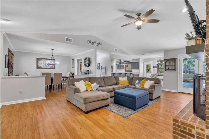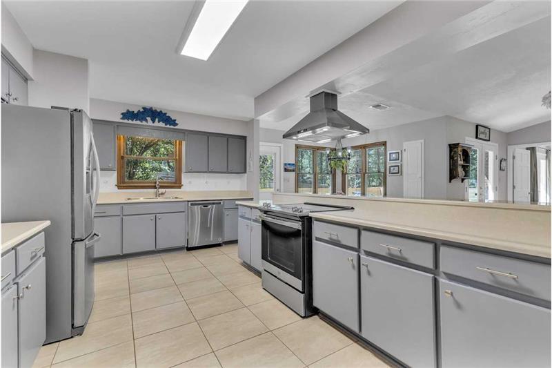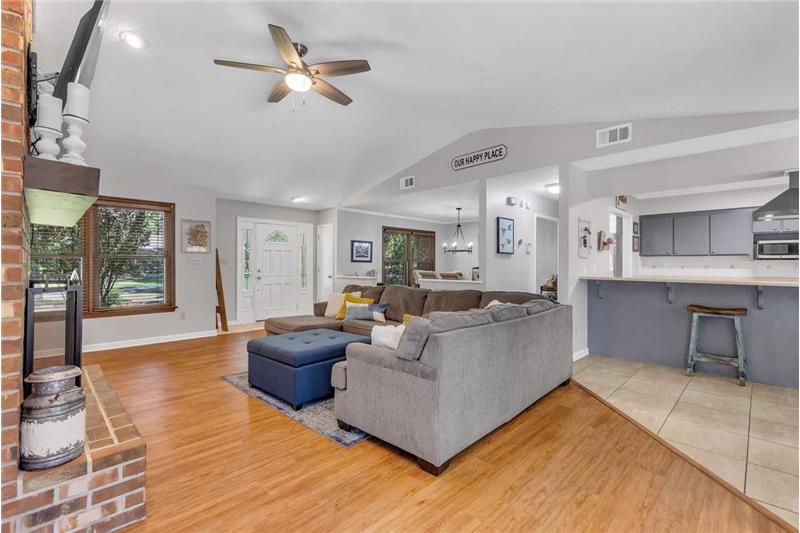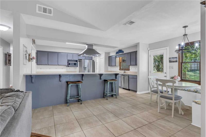 This all brick northeast home on 1.3 acres is conveniently located on a private road off Ox Bottom and is a rare find in Tallahassee at this price! Schools include Hawk Rise Elementary, Deerlake Middle, and Chiles High. Upon entry, you are immediately greeted with an open floor plan, vaulted ceilings, new lighting, freshly painted interior, and a timeless wood burning brick fireplace. Kitchen updates include new stainless appliances, a modern stainless island range hood, and tastefully painted cabinetry complete with new brushed nickel hardware. The built-in benches in the breakfast nook are
