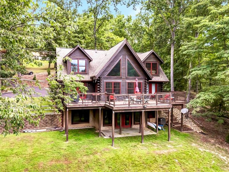This 3BR, 2.5BA lakefront log home on Cherokee Lake offers 106 ft of shoreline, a private dock, and stunning mountain views—all in the gated Chelaque community. Inside, cathedral ceilings, an open floor plan, and gas log fireplace create a warm, spacious feel. Trex decking spans the back for effortless outdoor living. The unfinished, plumbed basement with poured concrete walls offers room to expand. A new metal roof (July 2025) adds peace of mind. Enjoy lake life, high-speed internet, and quiet surroundings—just a short drive from Morristown or Rogersville.