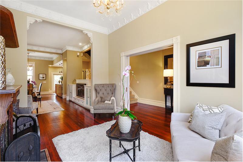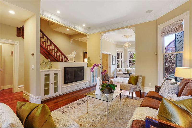 Majestic 4 bed 2.5 bath NOPA Victorian w/1 bed 1bath legal in-law. Effortlessly mixing period details w/modern comforts. With elaborate crown moldings, ceiling medallions, wall carvings, hardwood floors and chandeliers. Modern upgrades include under floor heating, NEST climate control, LED lights and double paned windows, built-in speaker system and state of the art gigabit network. In-law currently used as profitable Airbnb with private entrance. The backyard has hot tub and 2 private decks off the kitchen and master suite.