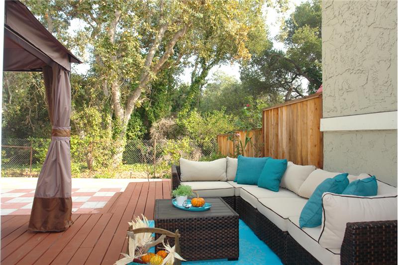 Private Oasis of Peace Hidden from Rush of Silicon Valley*Follow Yellow Board Road to Quiet Cul-de-Sac*E-Z Parking(1 Space*Driveway*2-Car Tandem Grg)*Soaring Ceilings*Granite Island K*E-Z Care Laminate Floors*THICK Baseboards*Great Floor Plan*Lg LR Opens to Private E-Z Care Yard*Deck*Patio*Fruit Trees-Apple,Lemon+*Wall of Green*NO BACK NEIGHBORS*Gleaming Granite Maple Island K w/Pantry,Roll-Outs,Spice Rack & Formal DR Overlook Yard*Inside Laundry*Half-Ba Dn*HUGE Playroom*Cupertino Schools*Meyerholz*Miller*Lynbrook!*
