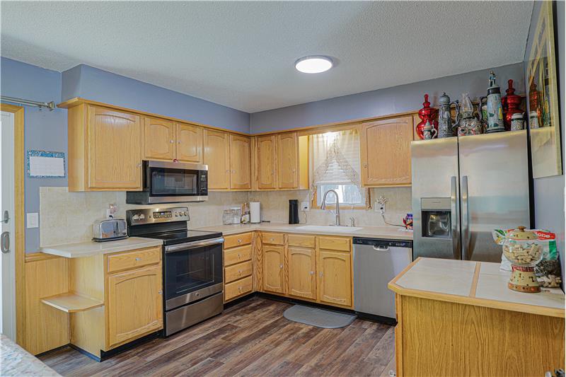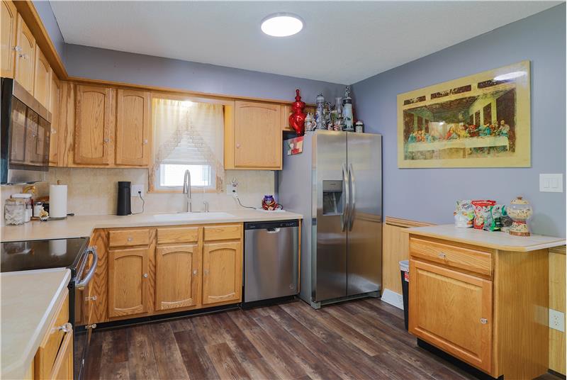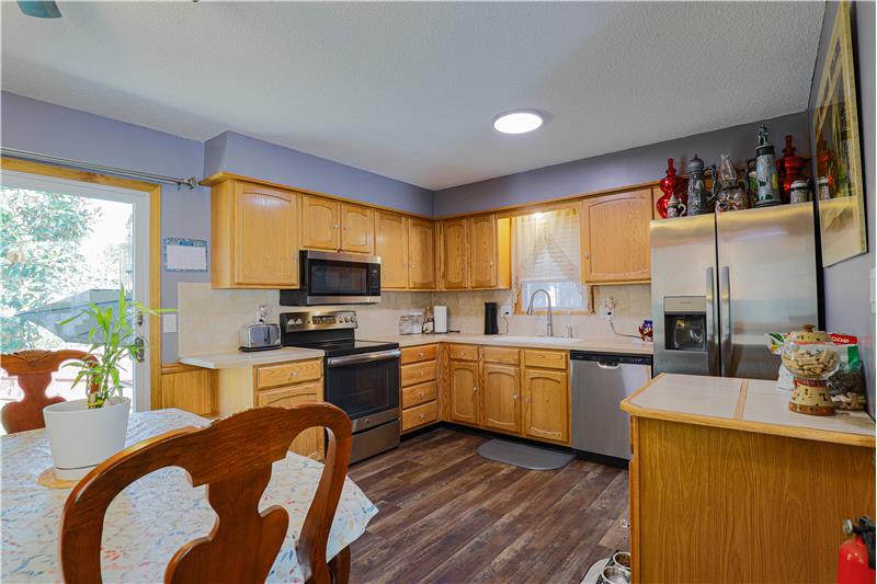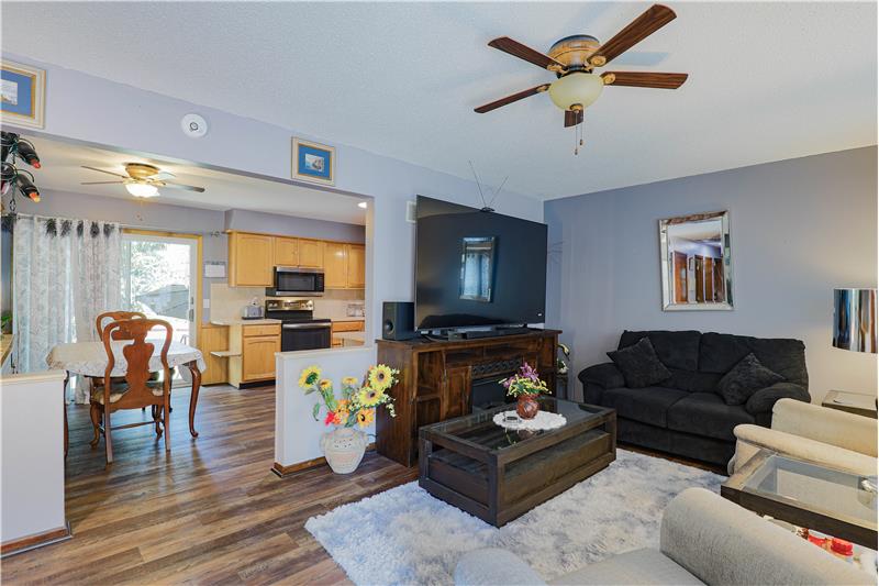 Beautiful Lee's Summit Mo home with many recent updates! New professionally installed luxury plank flooring in main living areas. New ceiling fans. New kitchen appliances including microwave, dishwasher, disposal, refrigerator. Interior painted in 2024. Basement family room walls sheet rocked. Home has one attached garage currently used for storage and a 2 car detached garage with plenty of room for the handy man looking for a man cave! The current seller moved the washer and dryer to the main floor! Living Room, Kitchen/dining, 3 bedrooms and 2 bathrooms up and family room with fireplace, non